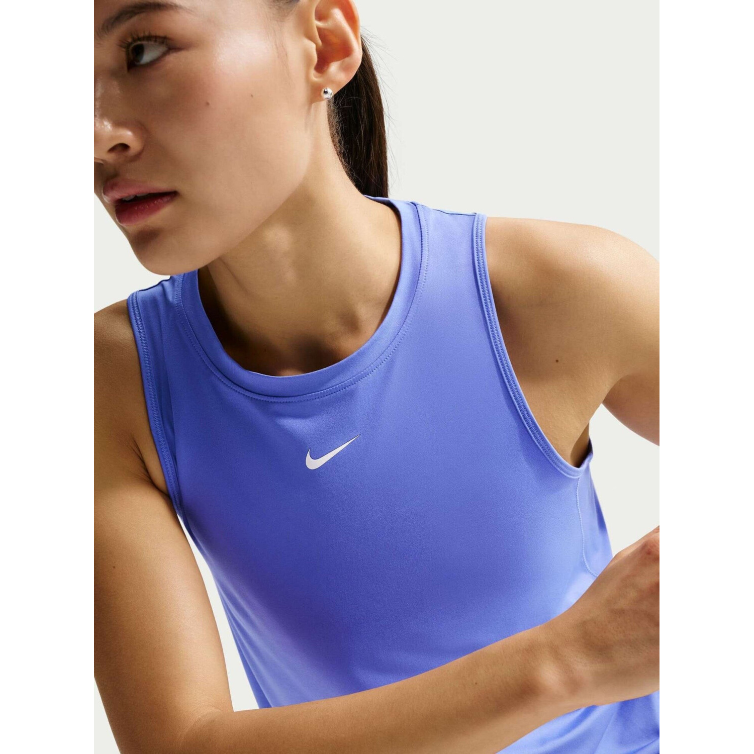 Nike Damen Tanktop One Classic Dri-FIT. Ob für ein Workout oder zum Relaxen – dieses Nike One Classic-Tanktop ist immer eine gute Wahl. Das leichte, seidenweiche Material trocknet schnell und ist für jede Alltagssituation bestens geeignet. Eine zeitlose, gut sitzende Passform und schweißableitende Technologie sorgen vom morgendlichen Spaziergang bis zum abendlichen Entspannen für ein angenehmes Tragegefühl. Nike One for All. Nike One begleitet dich schon lange auf deiner Fitnessreise. Wir wissen jedoch, dass Fitness für jeden unterschiedlich aussieht und sich auch unterschiedlich anfühlt. Auf der Suche nach etwas mehr individuellen und ausgefeilten Style? Dann schau dir die Nike One Fitted Crop-Tops an. Du möchtest nicht auf den Tragekomfort deines Lieblings-T-Shirts verzichten, wenn du ins Schwitzen kommst? Versuch es mit einem Nike One Relaxed Oberteil. Klassischer Stil und Komfort. Ein Rundhalsausschnitt gibt dem Tanktop einen klassischen, zeitlosen Vibe. Der abgerundete Saum und die elegante Nahtführung im gesamten Design verleihen dem Tanktop einen schnittigen Look. Daher kannst du es gut unter anderen Kleidungsstücken oder auch solo tragen. Trockenes Tragegefühl. Die Nike Dri-FIT-Technologie leitet Schweiß von der Haut ab, wodurch er schnell verdunstet, und ermöglicht so trockenen Tragekomfort bei jeder Bewegung. Material: 89% Polyester, 11% Elasthan.