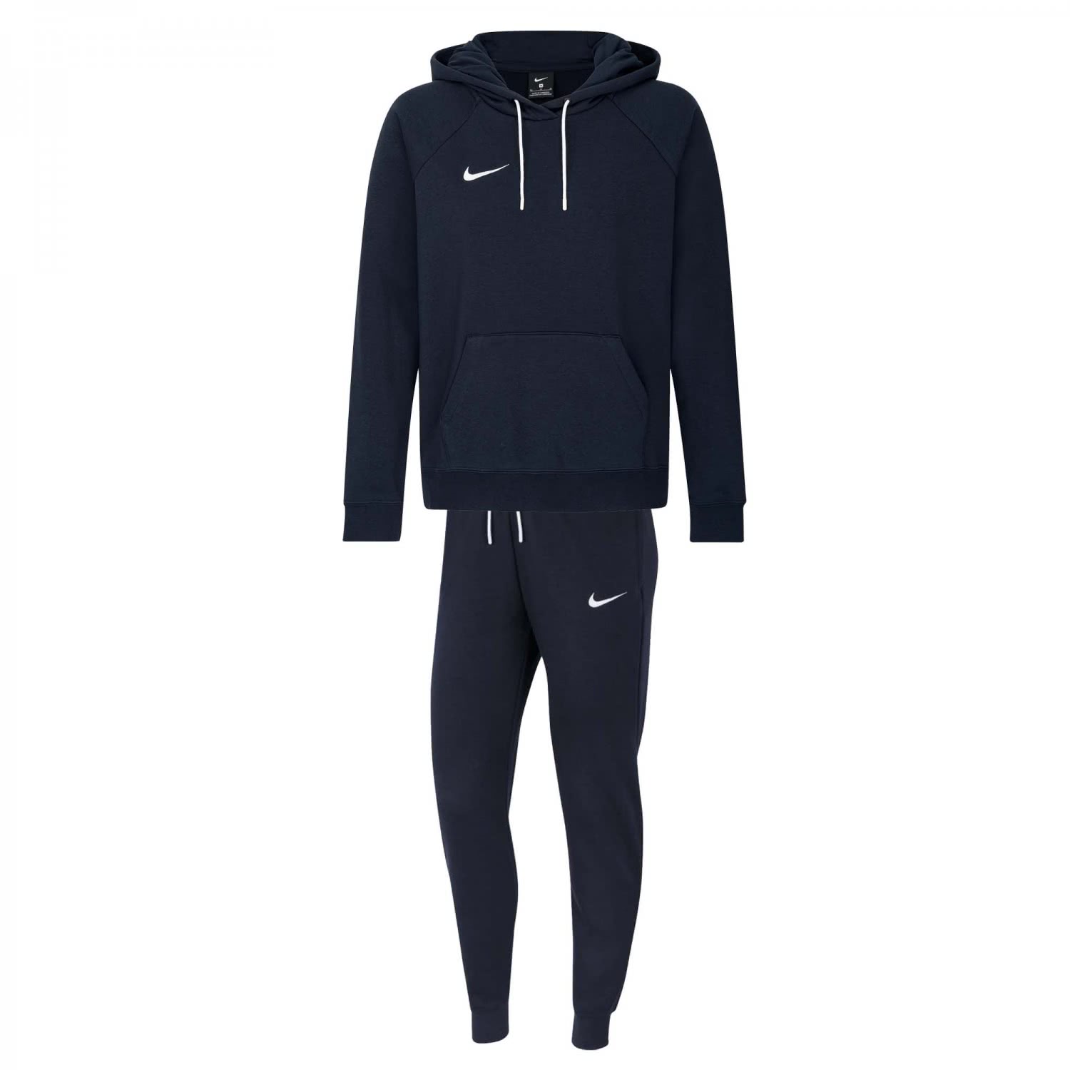 Nike Damen Trainingsanzug Park 20. Oberteil: Nike Damen Kapuzenpullover Park 20 Fleece Soccer Hoodie. Der Nike Park Hoodie besteht aus weichem Fleece und ist ein lässiger Pullover, der sowohl beim Spiel als auch im Alltag hohen Tragekomfort bietet. Fleece-Material garantiert ein weiches, warmes Tragegefühl. Rippmaterial an Bündchen und Saum sorgt für eine rutschfreie Passform. Mit dem Kordelzug an der Kapuze kannst du die Passform anpassen. Standardpassform für ein relaxtes, unkompliziertes Tragegefühl. Raglanärmel. Vordertasche. Material: 80% Baumwolle, 20% Polyester. Hose: Nike Damen Trainingshose Park 20 Fleece Soccer Pants. Ob beim Training oder im Wettkampf – die Nike Park Hose hält dich mit weichem Fleece warm und bequem. Bündchen an den Knöcheln sorgen dafür, dass die Füße frei bleiben und nichts zwischen dich und den Ball kommt. Fleece-Material garantiert ein weiches, warmes Tragegefühl. Kordelzug im Bund ermöglicht eine individuelle Passform. Reißverschlusstaschen ermöglichen die sichere Aufbewahrung deiner Essentials. Standardpassform für ein relaxtes, unkompliziertes Tragegefühl. Material: 80% Baumwolle, 20% Polyester.