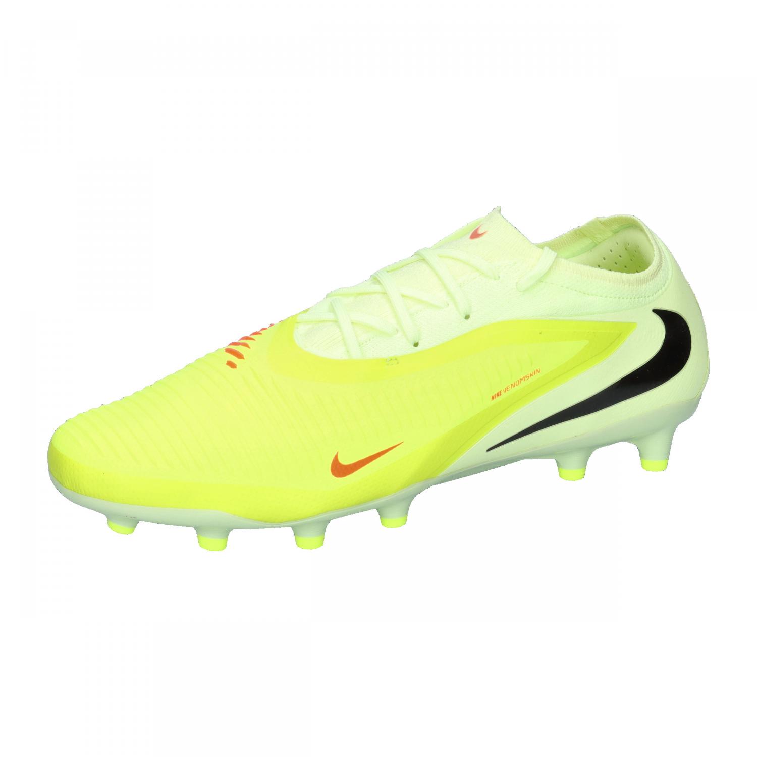 Mit dem Phantom 6 Pro AG-PRO werden aus Fehlschüssen Torschüsse. Das griffige VNMSkin- und Flyknit-Material sorgt für mehr Präzision, bringt deinen Fuß näher an den Ball und unterstützt dich so dabei, ihn im richtigen Eck zu versenken. Mehr Ballgefühl für saubere Schüsse. Nike VNMSkin ist ein griffiges Material, das die Ballkontaktzone des Schuhs abdeckt und beim Dribbeln, Passen und Schießen eine hervorragende Ballkontrolle bietet. Zusammen mit dem Flyknit-Material bringt es deinen Fuß noch näher an den Ball. Traktion auf dem Spielfeld. Die konischen Stollen auf der Platte bieten zuverlässigen Grip bei schnellen Bewegungen. Natürliche Passform. Ein neuer Schuhrahmen sorgt für eine natürlichere Passform, vor allem im Zehenbereich. Der Schuh schmiegt sich an deinen Fuß und bringt dich näher an den Ball – für maximale Ballkontrolle. Obermaterial: Sonstiges Material, Textil. Futter und Decksohle: Textil. Laufsohle: Sonstiges Material.