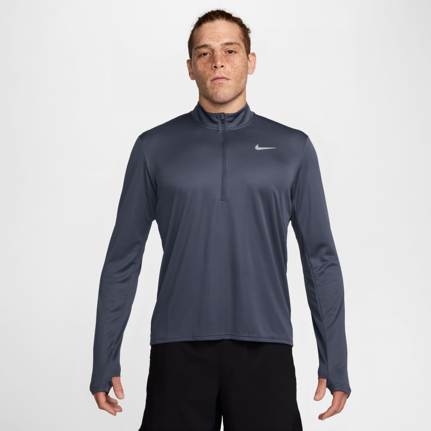 Nike Herren Laufoberteil Pacer Dri-FIT. Vom Sprint auf der Bahn bis zum 5 km-Lauf im Urlaub – das Pacer-Oberteil in entspannter Passform samt zusätzlicher Schicht mit Halbreißverschluss ist genau das, was du brauchst. Es ist leicht und atmungsaktiv und sorgt dafür, dass du bei jedem Schritt ein sicheres Tragegefühl hast. Daumenlöcher halten die Handgelenke warm und verhindern, dass die Manschetten stören. Material: 100% Polyester.