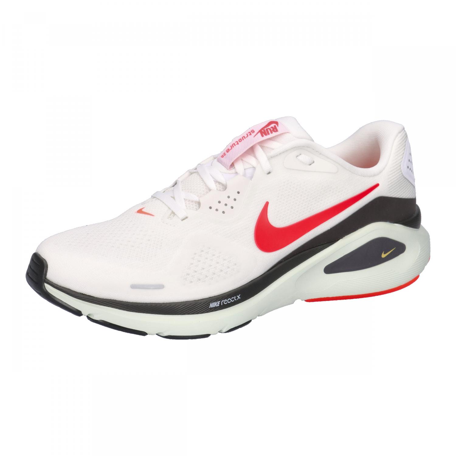 Nike Herren Laufschuhe STRUCTURE 26. Die unterstützende Dämpfung des Structure 26 bietet Stabilität für tägliche Läufe. Eine durchgehende Mittelsohle aus ReactX ermöglicht ein gedämpftes und dennoch stabiles Abrollen von der Ferse zu den Zehen. Das bewährte Stützsystem im Mittelfußbereich umschließt Fußgewölbe und Ferse und sorgt so für eine feste Grundlage. Obermaterial: Textil. Futter und Decksohle: Textil. Laufsohle: Sonstiges Material.