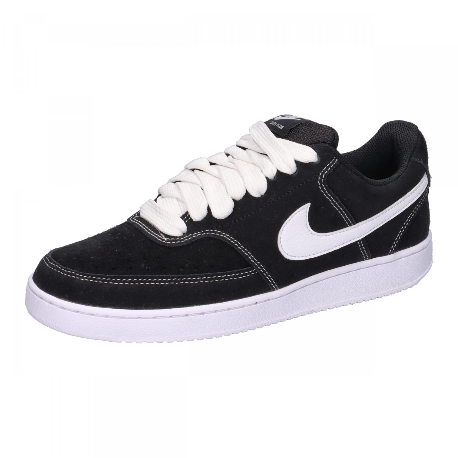 Nike Herren Sneaker Court Vision Lo Fl. Der Nike Herren Sneaker Court Vision Low vereint den klassischen Fastbreak-Style des Basketballs der 80er Jahre mit dem Tempo des modernen Spiels. Das Obermaterial ist von Oldschool-Basketballsneakern inspiriert und verleiht dem Schuh einen zeitlosen Look. Das verwendete Wildleder wird mit der Zeit weicher und entwickelt dabei einen authentischen Vintage-Charakter. Die klassische Cupsohle aus Gummi, angelehnt an legendäre Nike-Styles der Vergangenheit, sorgt zusammen mit der strapazierfähigen Gummi-Außensohle für zuverlässige Traktion und Langlebigkeit. Perforationen an den Zehen und an den Seiten verbessern zudem die Atmungsaktivität und erhöhen den Tragekomfort. Obermaterial: Leder, Textil. Futter und Decksohle: Textil. Laufsohle: Sonstiges Material.