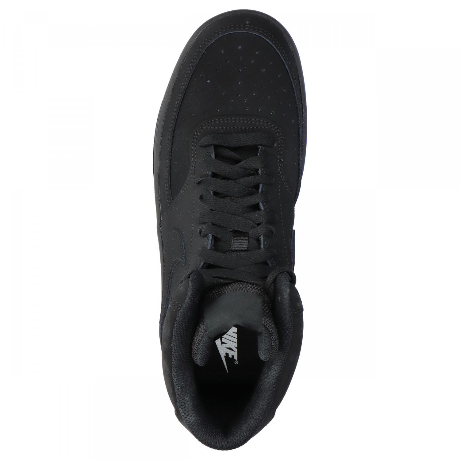 Nike Herren Sneaker Court Vision Mid. Inspiriert von den Basketball-Trends der 80er Jahre vereint der Nike Court Vision Mid Retro-Hartholz-Look mit modernem Komfort. Das dezente, komplett schwarze Design verleiht deinem einzigartigen Style eine kantige Note. Das Obermaterial aus echtem Leder ist vom Basketball-Stil der 80er Jahre inspiriert. Das Obermaterial ist leicht zu stylen und besticht durch ein aufgenähtes Swoosh-Design. Der gepolsterte Schaft und die Perforationen an Zehen und Seiten sorgen für Komfort und Luftigkeit. Die Gummisohle sorgt für Strapazierfähigkeit und Traktion. Obermaterial: Leder. Futter und Decksohle: Textil. Laufsohle: Sonstiges Material.