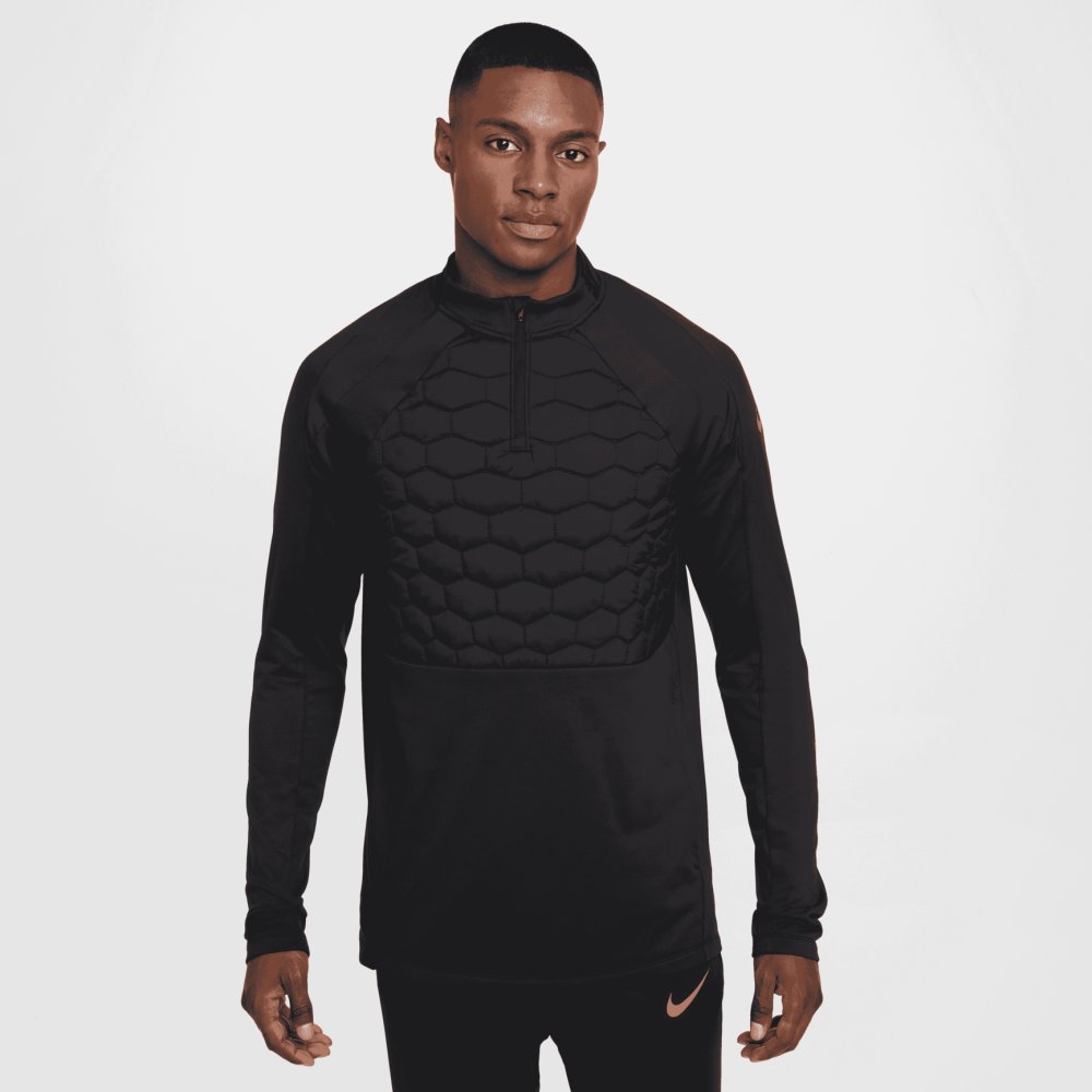 Nike Strike Therma-FIT Langarm-Fußballoberteil für Herren.Mit Designdetails, die speziell auf die aufstrebenden Fußballstars zugeschnitten sind, ist dieses Strike Drill-Oberteil für kaltes und unberechenbares Wetter gemacht. Es wurde mit hochelastischem, angerautem Material und isolierten Brusteinsätzen aktualisiert, um dich auf dem Spielfeld besonders warm zu halten. Die Einsätze an Schultern und Brust sind wasserabweisend. Die Nike Therma-FIT-Technologie nutzt deine natürliche Körperwärme, damit du auch bei kaltem Wetter warm bleibst. Die leichte Isolierung auf der Brust sorgt für zusätzliche Wärme. Das Design mit Viertelreißverschluss ermöglicht ein einfaches An- und Ausziehen. Reißverschlusstaschen eignen sich zur sicheren Aufbewahrung deiner Essentials. Daumenöffnungen sorgen für mehr Abdeckung und verhindern ein Verrutschen der Ärmel bei Bewegungen. Material: 92% Polyester; 8% Elasthan.