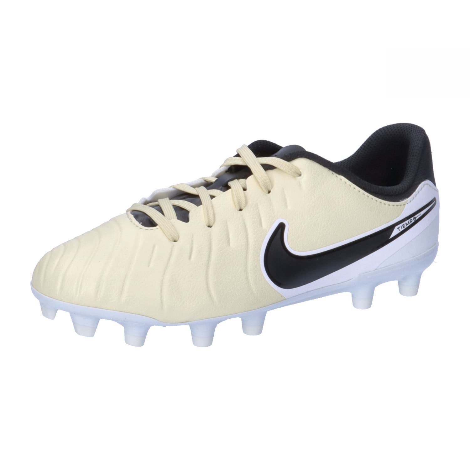 Nike Kinder Fussballschuhe Jr. Tiempo Legend 10 Academy FG/MG. Sogar Legenden finden Wege, sich weiterzuentwickeln. Die neueste Version dieser Academy-Stollenschuhe wurde entwickelt, um Ihr Spiel auf die nächste Stufe zu heben. Sie verfügt über das brandneue FlyTouch Lite-Leder. Es ist weicher als Naturleder, passt sich Ihrem Fuß an und überdehnt sich nicht, sodass Sie das Tempo Ihres Spiels bestimmen können. Der Legend 10 ist leichter und schlanker als jeder andere Tiempo bisher und eignet sich für jede Position auf dem Spielfeld, egal ob Sie einen punktgenauen Pass durch die Verteidigung schicken oder zurücklaufen, um einen Ausreißer zu stoppen. Sehen Sie die Mikropunkte oben? Sie verstärken die Berührungszonen zum Schießen, Dribbeln und Passen. Sie sorgen für ein schlankeres Aussehen, während die zusätzliche Polsterung entfernt wird. Und was noch besser ist: Sie opfern nicht die Ballkontrolle, die Sie sich auf dem Spielfeld wünschen. Wir haben beim Tiempo 9 auf die Schaumstoffpolster verzichtet, damit Ihr Fuß noch näher an den Ball herankommt, wenn Sie ihn unter Kontrolle haben. Stattdessen haben wir die Leinen in die Schuhplatte eingeformt. Das FlyTouch Lite-Kunstleder ist unglaublich weich. Dadurch passt sich die Schuhplatte bequem an Ihren Fuß an, ohne das Material zu überdehnen. Die Zungenkonstruktion mit zusätzlicher Polsterung sorgt für ein sicheres Gefühl und Komfort in den wichtigsten Schlagzonen. Das Mikrofaserfutter sorgt für ein erstklassiges Tragegefühl. Die Platte vereint konische Stollen in der Ferse für optimale Traktion und Stabilität beim Bremsen und Richtungswechsel, genau richtig unter allen Bedingungen. Zur Verwendung auf natürlichen und synthetischen Oberflächen. Gepolsterte Innensohle. Obermaterial: Leder. Futter und Decksohle: Textil;Sonstiges Material. Laufsohle: Sonstiges Material.