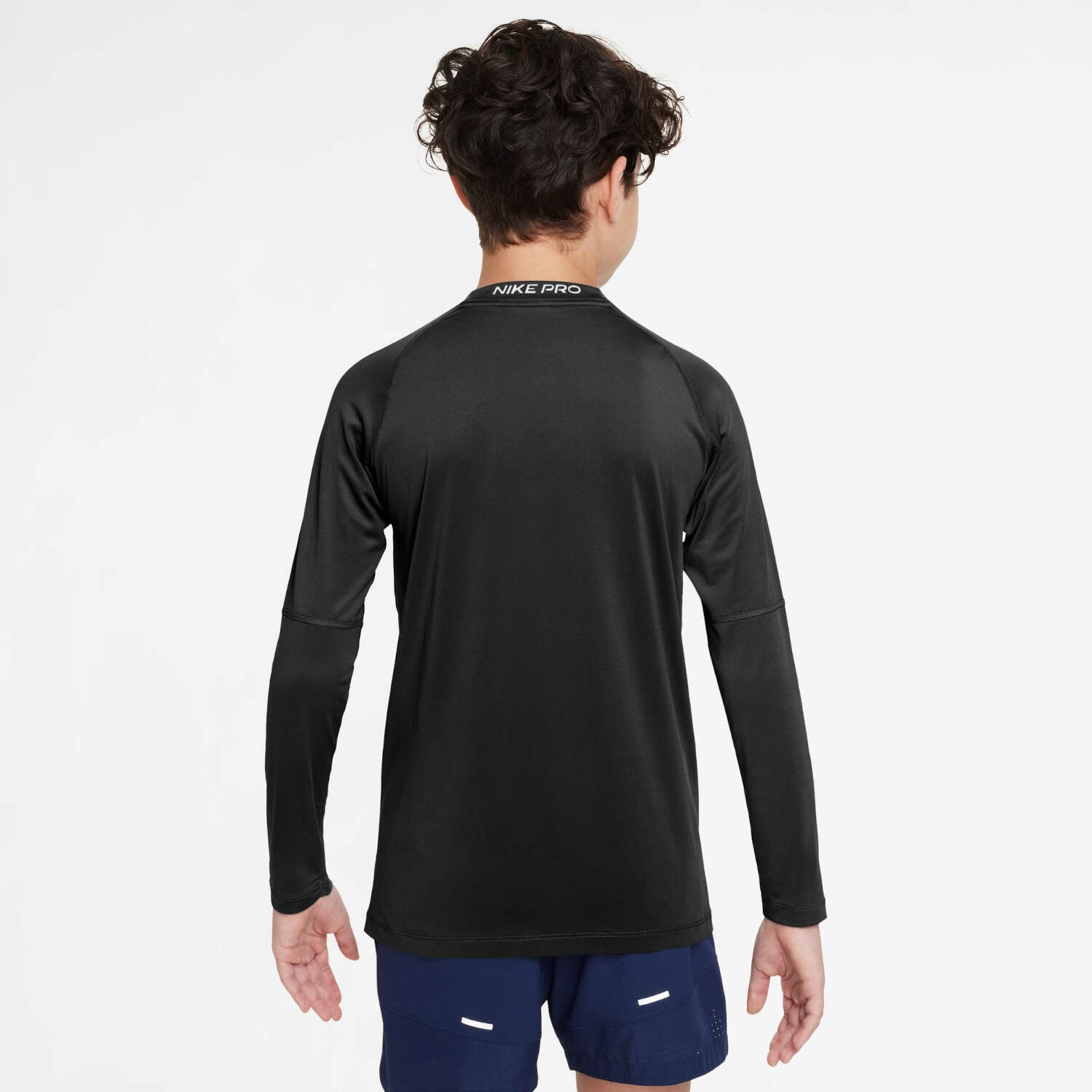 Nike Kinder Langarmshirt Pro Dri-FIT-Longsleeve. Wäre dieses Oberteil eine wissenschaftliche Arbeit, würdest du wahrscheinlich eine Eins bekommen: Wir haben untersucht, wo Sportler wie du schwitzen, damit wir unsere schweißableitende Technologie dort einsetzen können, wo sie am meisten gebraucht wird. Das Ergebnis ist ein geschmeidiges und dehnbares, leichtes Oberteil, das dir hilft, beim Training und beim Spiel kühl und komfortabel zu bleiben.Die Nike Dri-FIT-Technologie leitet Schweiß von der Haut ab, wodurch er schneller verdunstet, und ermöglicht so trockenen Tragekomfort. Das Strickmaterial fühlt sich weich und geschmeidig an und die flachen Nähte sorgen für einen hohen Tragekomfort. Material: 90% Polyester, 10% Elasthan.