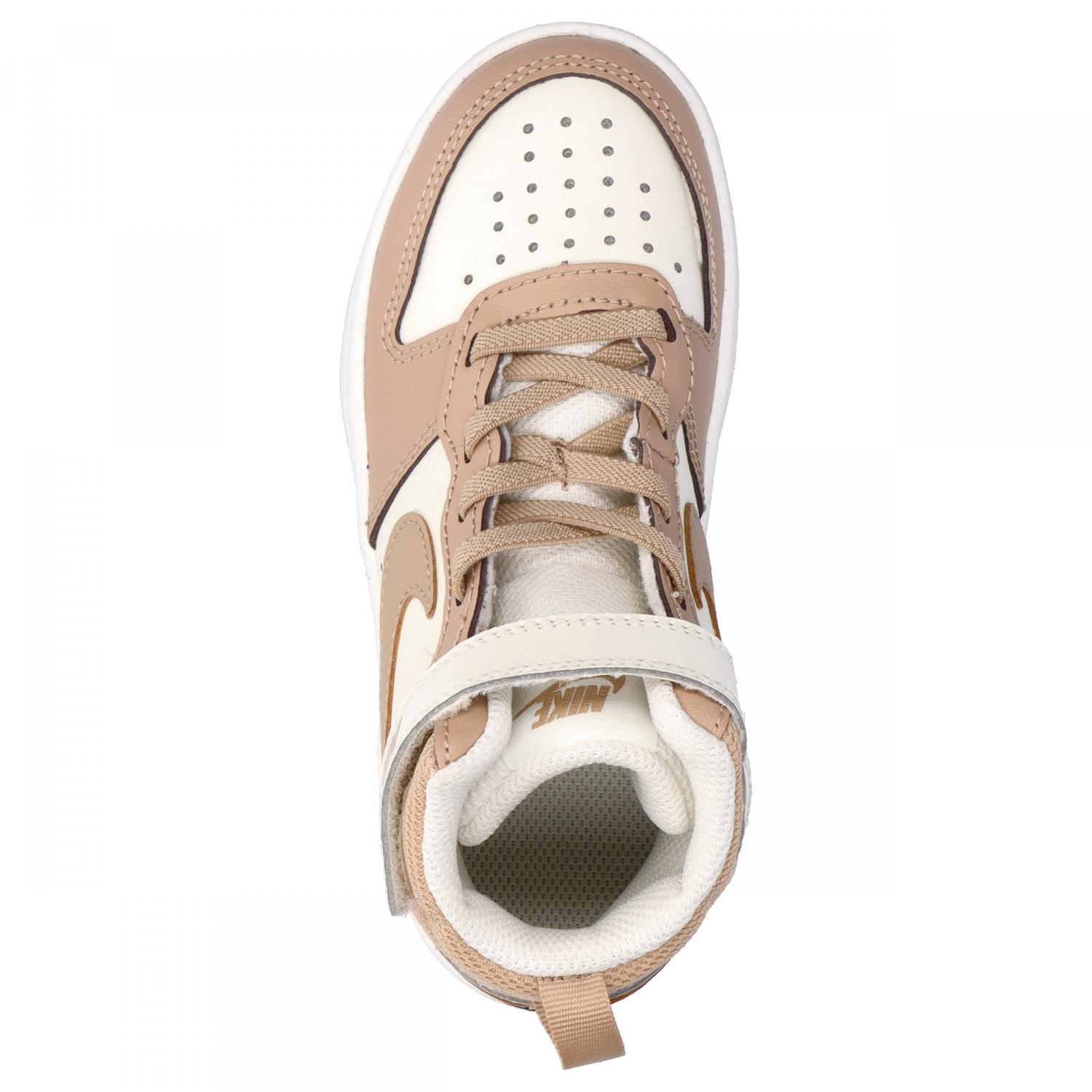 Nike Kinder Sneaker Court Borough Mid 2 (PSV). Mit dem Nike Court Borough Mid 2 sehen Sie auf dem Platz wie ein All-Star aus. Das klassische High-Top-Design besteht aus strapazierfähigem Leder für einen edlen Look und ein hochwertiges Tragegefühl. Ein Riemen erleichtert das An- und Ausziehen. Das Leder ist strapazierfähig und leicht zu reinigen. Dank dem Klettverschlussriemen lässt sich der Schuh einfach an- und ausziehen. Die Polsterung um Zunge und Knöchel ist weich und bequem. Die Cupsohlen-Konstruktion besticht durch einen klassischen Look und ein angenehmes Tragegefühl.