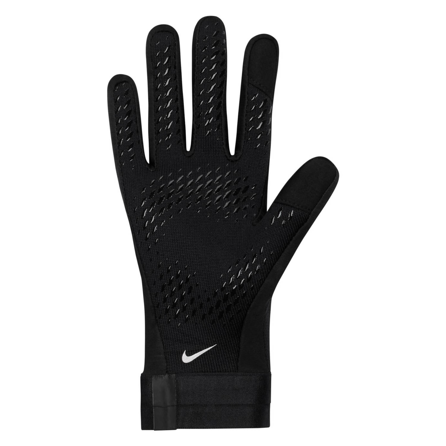 Nike Kinder Fussballhandschuhe  Y NK ACDMY THERMAFIT-HO24. Lass dich nicht von kaltem Wetter von deinem Training abhalten. Durch die Therma-FIT-Technologie bleiben deine Hände warm und deine Körpertemperatur wird reguliert. Die flexiblen Bündchen bieten einen sicheren Halt und schließen die Wärme ein. Die Nike Therma-FIT-Technologie nutzt deine natürliche Körperwärme, damit du auch bei kaltem Wetter warm bleibst. Strukturierte Handinnenflächen sorgen für besseren Grip. Material: 62% Polyester, 28% Polyamid, 5% Gummi, 5% Elasthan.