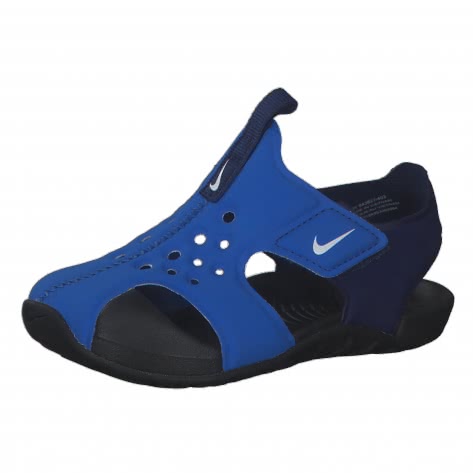 Nike Kleinkinder Sandale Sunray Protect 2 (TD). Die Nike Sunray Protect 2 (TD) Sandale für Kleinkinder bietet einen kompIetten Zehenschutz und Außensohlen-Traktion zum Spielen im Freien. Klettverschlüsse erleichtern das An- und Ausziehen und die Öffnungen im Obermaterial sorgen für Belüftung, wenn die kleinen Füße warm werden. Das wasserfeste textile Obermaterial fühlt sich elastisch und natürlich an. Die Phylon-Mittelsohle bietet Dämpfung bei geringem Gewicht. 2 Klettverschlüsse sorgen für eine verstellbare Passform. Obermaterial: Textil. Futter und Decksohle: Textil. Laufsohle: Sonstiges Material.