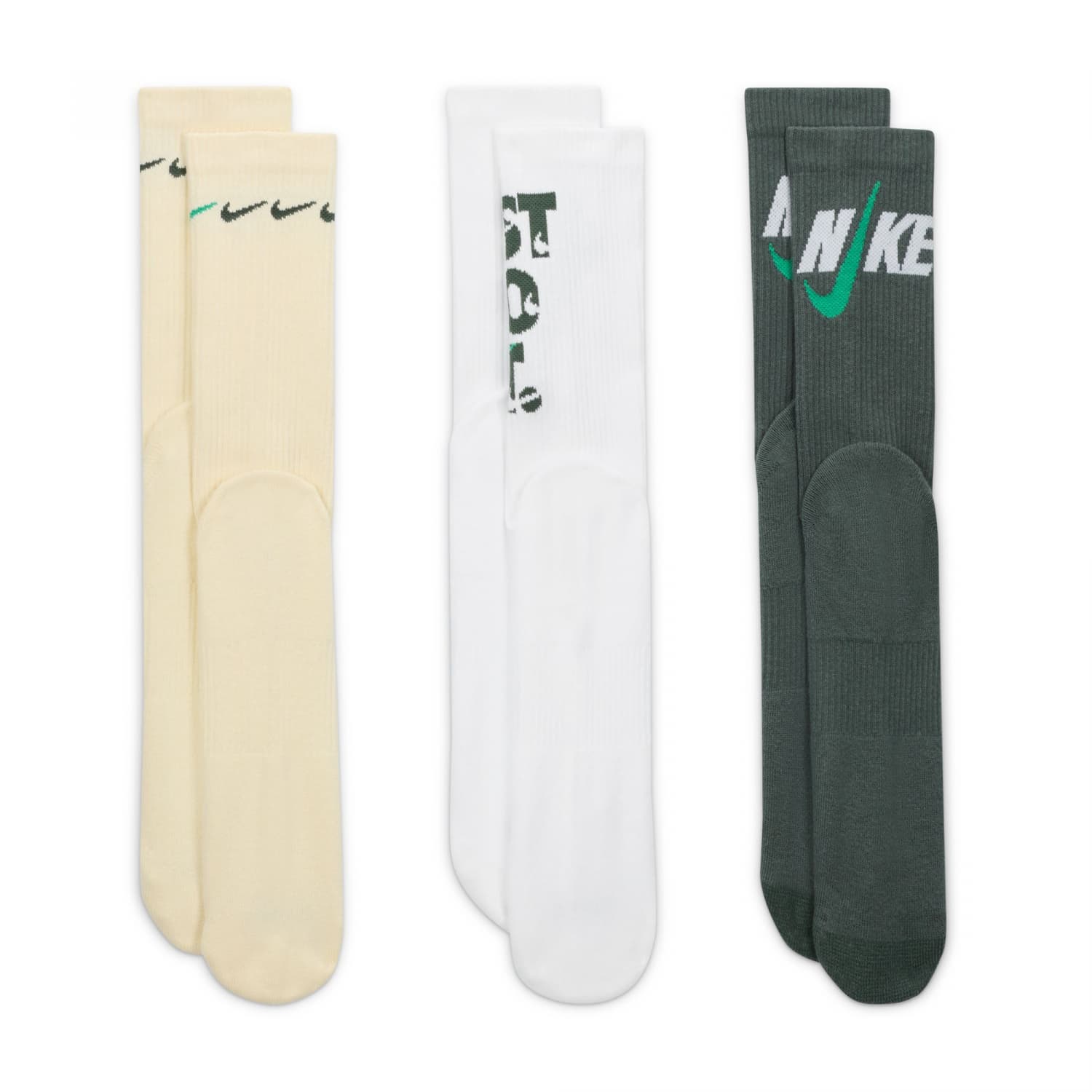 Die Nike Everyday Plus Cushioned Socken sorgen für Tragekomfort und bieten zusätzliche Dämpfung unter der Ferse und dem Zehenbereich sowie ein eng anliegendes, stützendes Fußgewölbeband. Schweißableitende Technologie und dazu Atmungsaktivität halten deine Füße trocken und kühl, damit du noch mehr Wiederholungen schaffst. Die Dämpfung unter dem Vorfuß und der Ferse bietet Dämpfung bei deinen Workouts. Die Dri-FIT-Technologie sorgt für Trockenheit und Tragekomfort an den Füßen. Ein Band um das Fußgewölbe ermöglicht eine eng anliegende Passform. Ein atmungsaktives Strickmuster an der Oberseite sorgt für zusätzliche Belüftung. Verstärkte Ferse und Zehen sorgen für zusätzliche Strapazierfähigkeit. Einzigartige Nike Grafiken auf allen Socken. Material: 66% Baumwolle, 30% Polyester, 3% Elasthan, 1% Polyamid.