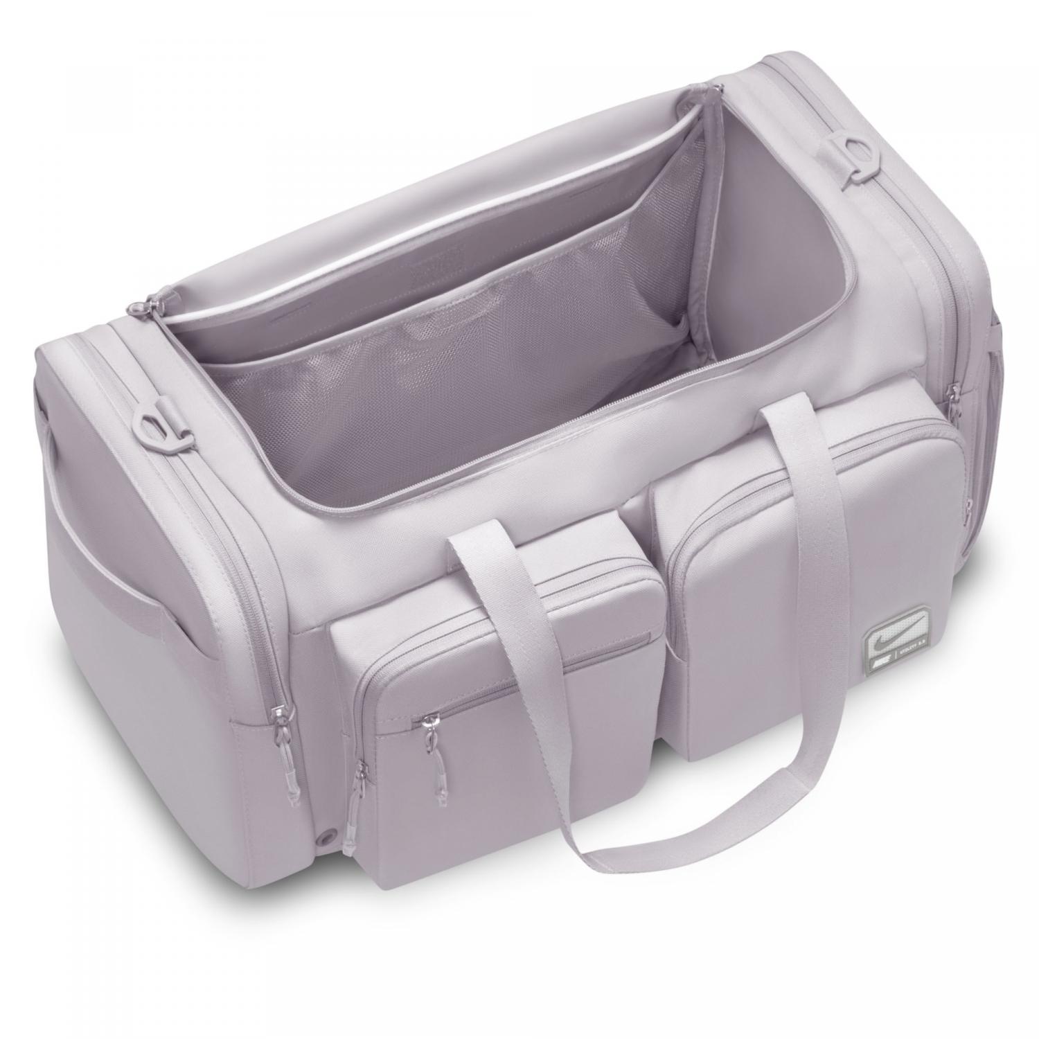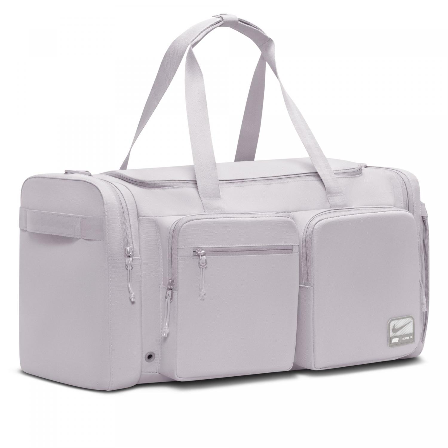 Nike Sporttasche Utility Power 2.0. Mit der Utility-Sporttasche kannst du deine Sweat-Session sofort starten, da die Taschen dir helfen, organisiert zu bleiben. Kleidung zum Wechseln und Sneaker passen in das Hauptfach, während die Außentaschen mit Reißverschluss ideal sind, um schnell auf kleine Essentials zuzugreifen. Verstellbare Schulterträger und Griffe oben sowie an den Seiten ermöglichen bequeme Trageoptionen. Das strapazierfähige, dicht gewebte Polyestermaterial sorgt für Halt. Die integrierte Belüftung lässt Luft an deine Ausrüstung. Maße: 56 x 28 x 30,5 cm. Volumen: 51 Liter. Material: 100% Polyester.