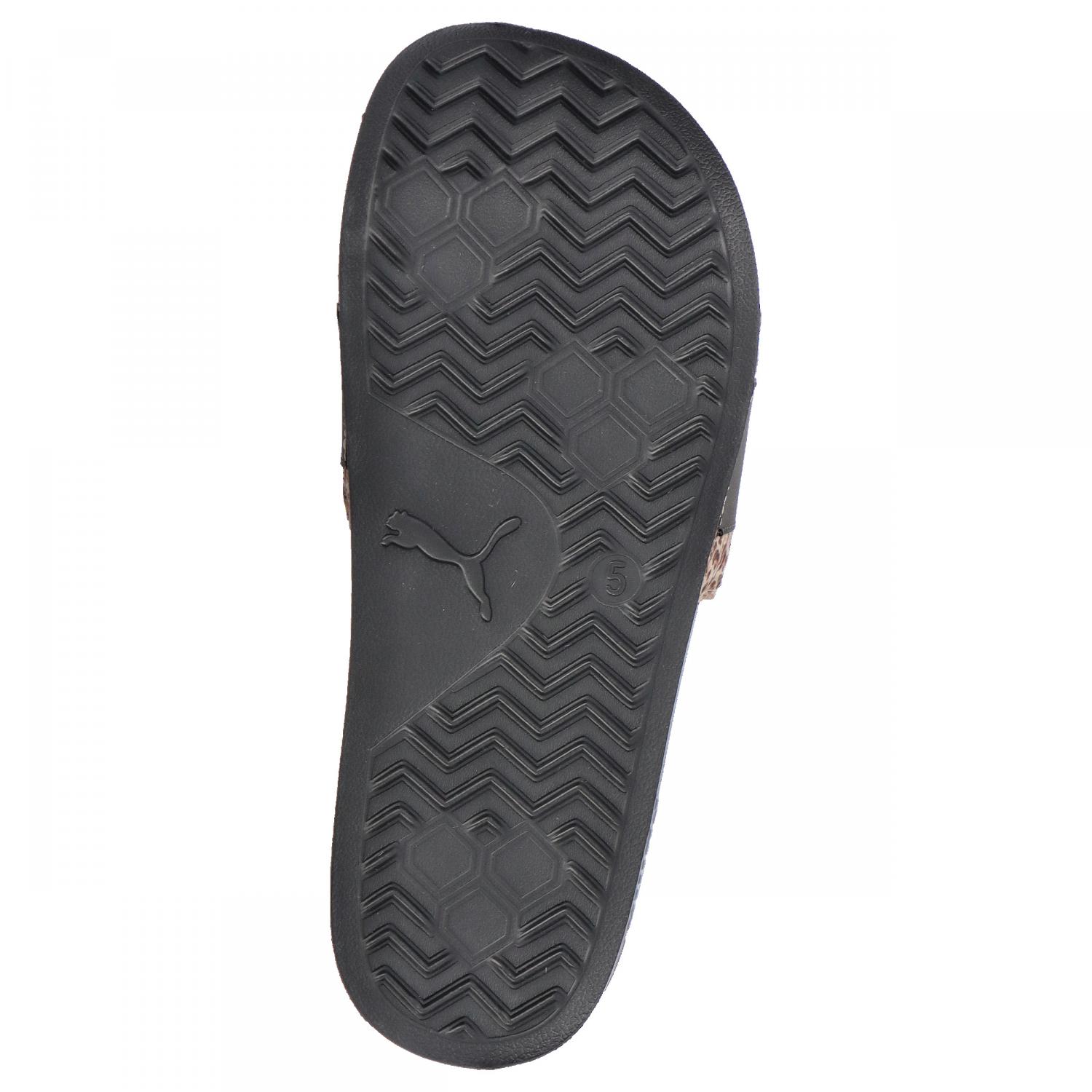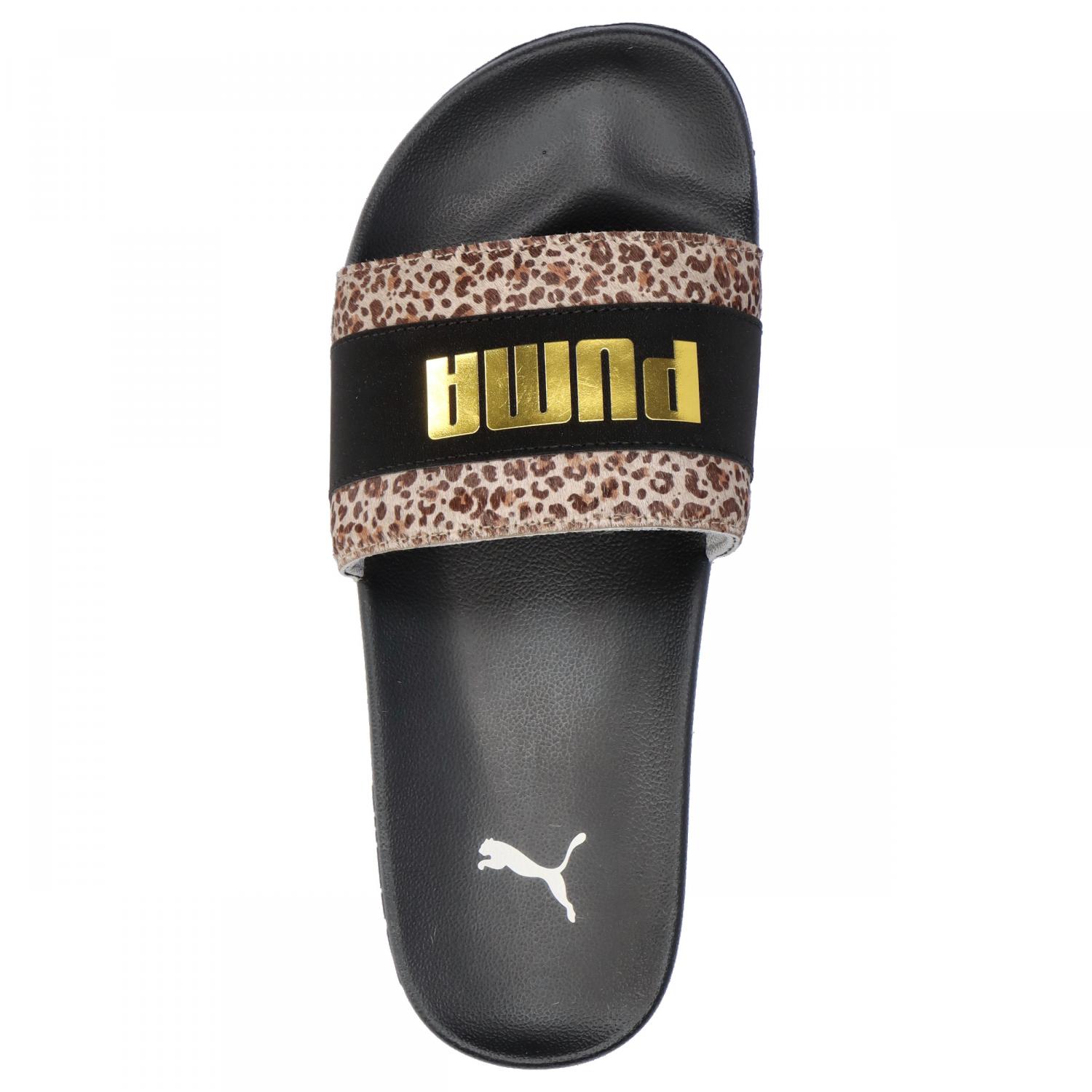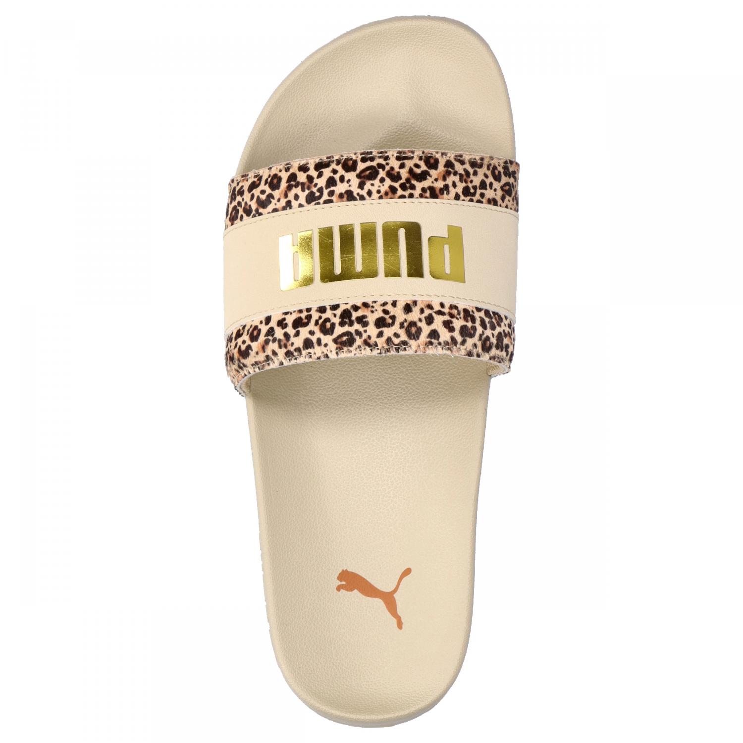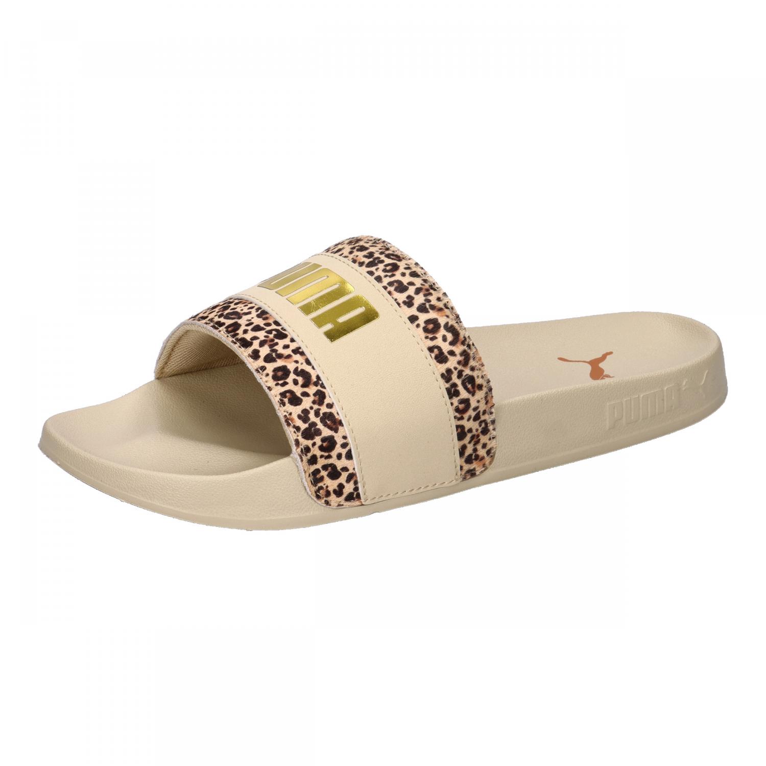 Puma Damen Badeschlappen Leadcat 2.0 Animal Flair. Die Leadcat 2.0 Animal Flair sind die perfekten Sandalen für die ganze Saison. Diese Version basiert auf der Passform und dem Komfort des Originals Leadcat, bietet aber zusätzlich einen gepolsterten Riemen, ein extra geformtes Fußbett und eine griffige Außensohle für optimalen Halt, egal wohin die Welt Sie führt. Diese spezielle Version besticht durch ein Obermaterial mit Animal-Print und ein goldenes Logo. Obermaterial: Sonstiges Material. Futter und Decksohle: Textil. Laufsohle: Sonstiges Material.