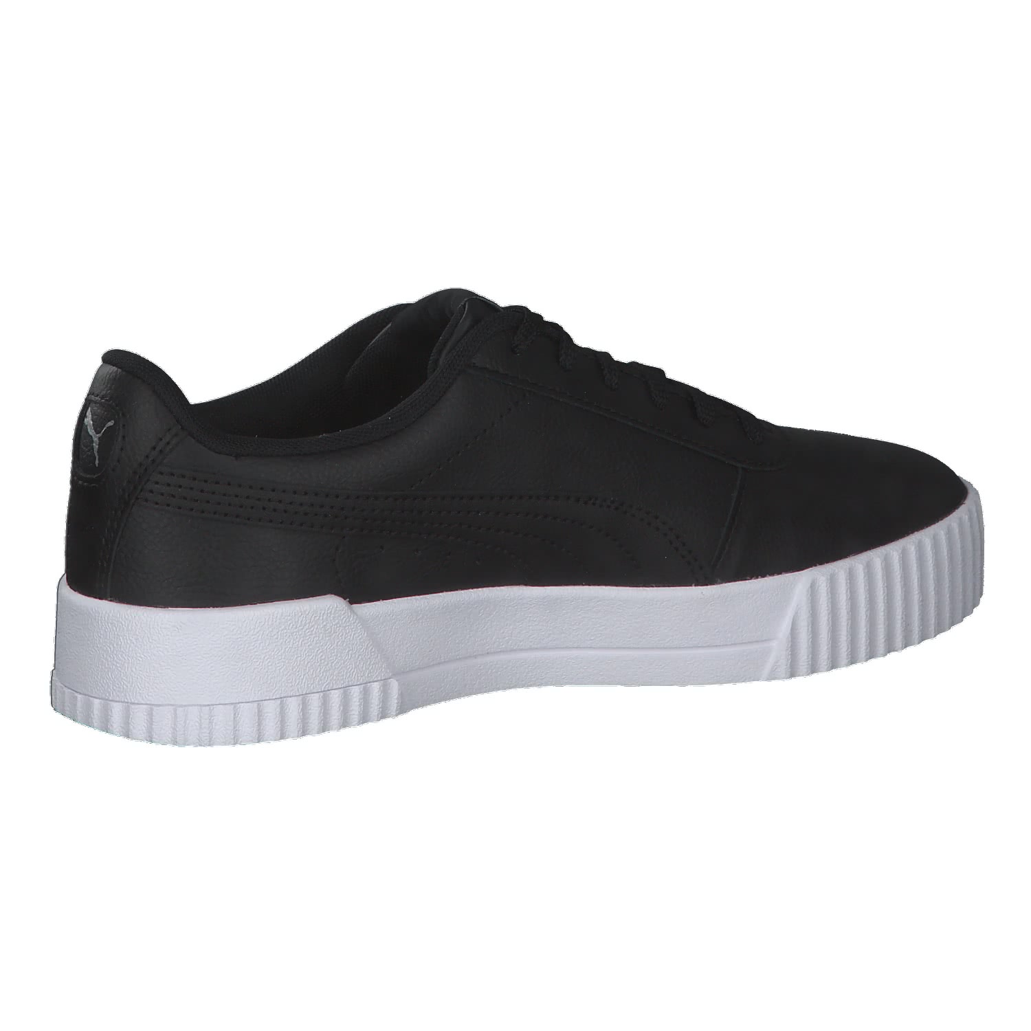 Puma Damen Sneaker Carina L. Der Carina L lässt sich von Stilen aus den 80er Jahren inspirieren. Das Obermaterial aus Leder wird durch einen perforierten Vamp und einen PUMA-Formstreifen betont. Die SoftFoam + Einlegesohle bietet hervorragende Dämpfung und optimalen Komfort für jeden Schritt Ihres Tages. Das Highlight des Schuhs ist das neue Cupsohlen-Werkzeug mit einer leicht erhöhten Plateausohle. Obermaterial: Leder, Sonstiges Material. Futter und Decksohle: Textil. Laufsohle: Sonstiges Material.