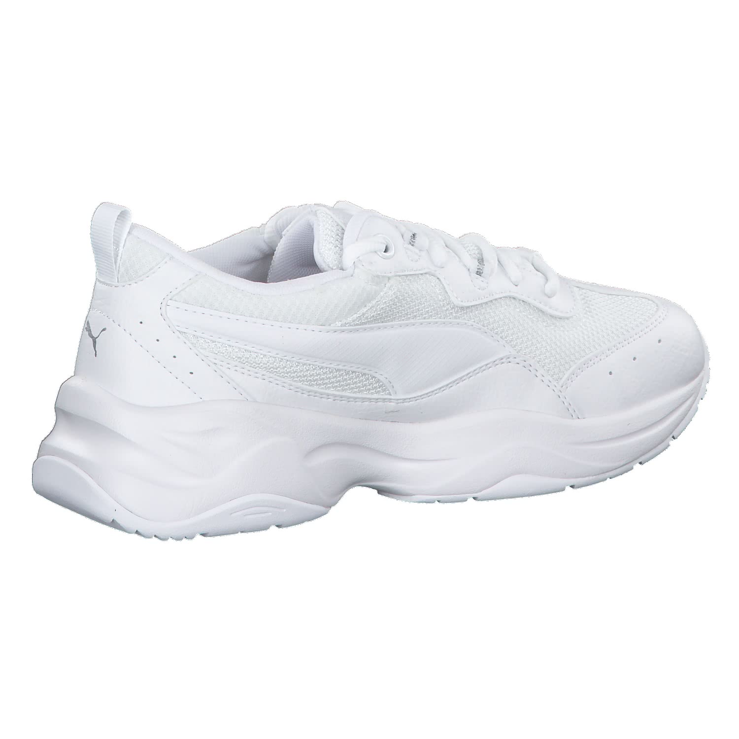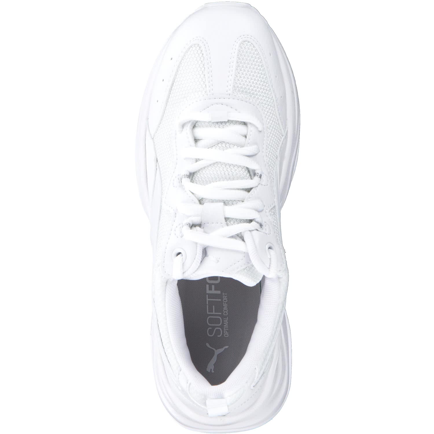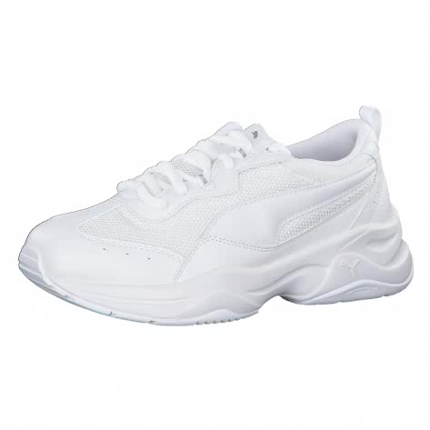 Puma Damen Sneaker Cilia. Mit seiner wuchtigen Silhouette und den Overlay-Details auf dem Obermaterial sieht der PUMA Cilia so aus, als hätte er sich gerade aus einem Dance-Video der Industrial-Szene aufgemacht, um die Welt zu erobern. Mit einer ganzen Bootsladung an Features und Technologien wäre er an den Füßen eines Profi-Tänzers jedenfalls gut aufgehoben. Die PUMA IMEVA Zwischensohle bietet exzellente Dämpfung, die PUMA SoftFoam+ Einlegesohle treibt den Komfort-Faktor auf die Spitze, die Gummi-Außensohle schützt vor unerwünschten Ausrutschern. Material: Textil.