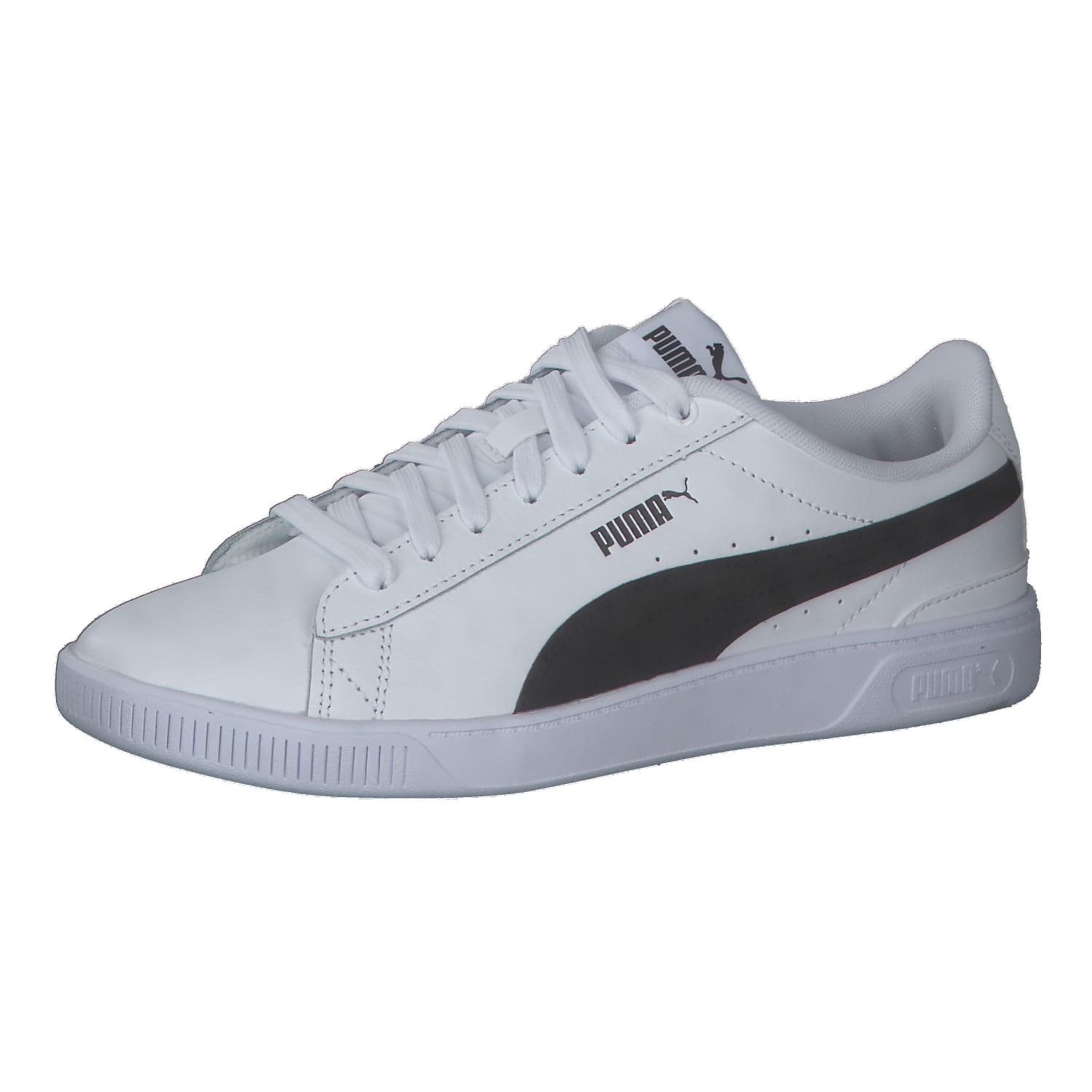 Puma Damen Sneaker Vikky V3 Leather. Wir stellen die Vikky v3 Leder-Sneaker vor: Neu gestaltet für einen moderneren und frischeren Look. Die neue Interpretation eines zeitlosen Klassikers bietet ein subtiles PUMA-Branding, weiches und glattes, gewalktes Leder, eine bequeme gepolsterte Einlegesohle und recycelte Materialien, damit du stilvoll und bequem unterwegs bist – und das alles mit gutem Gewissen. Niedriges Schuhdesign. Flacher Absatz. PUMA Formstrip an der Seite. Obermaterial: Leder. Futter und Decksohle: Sonstiges Material. Laufsohle: Sonstiges Material.