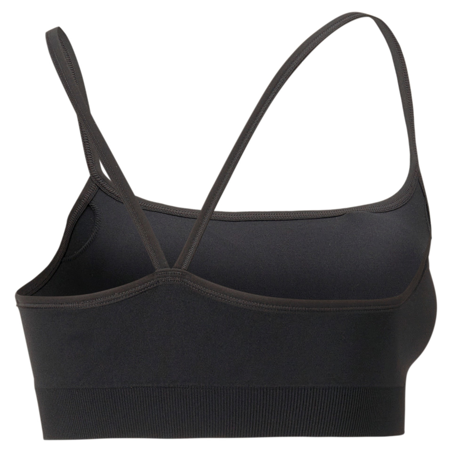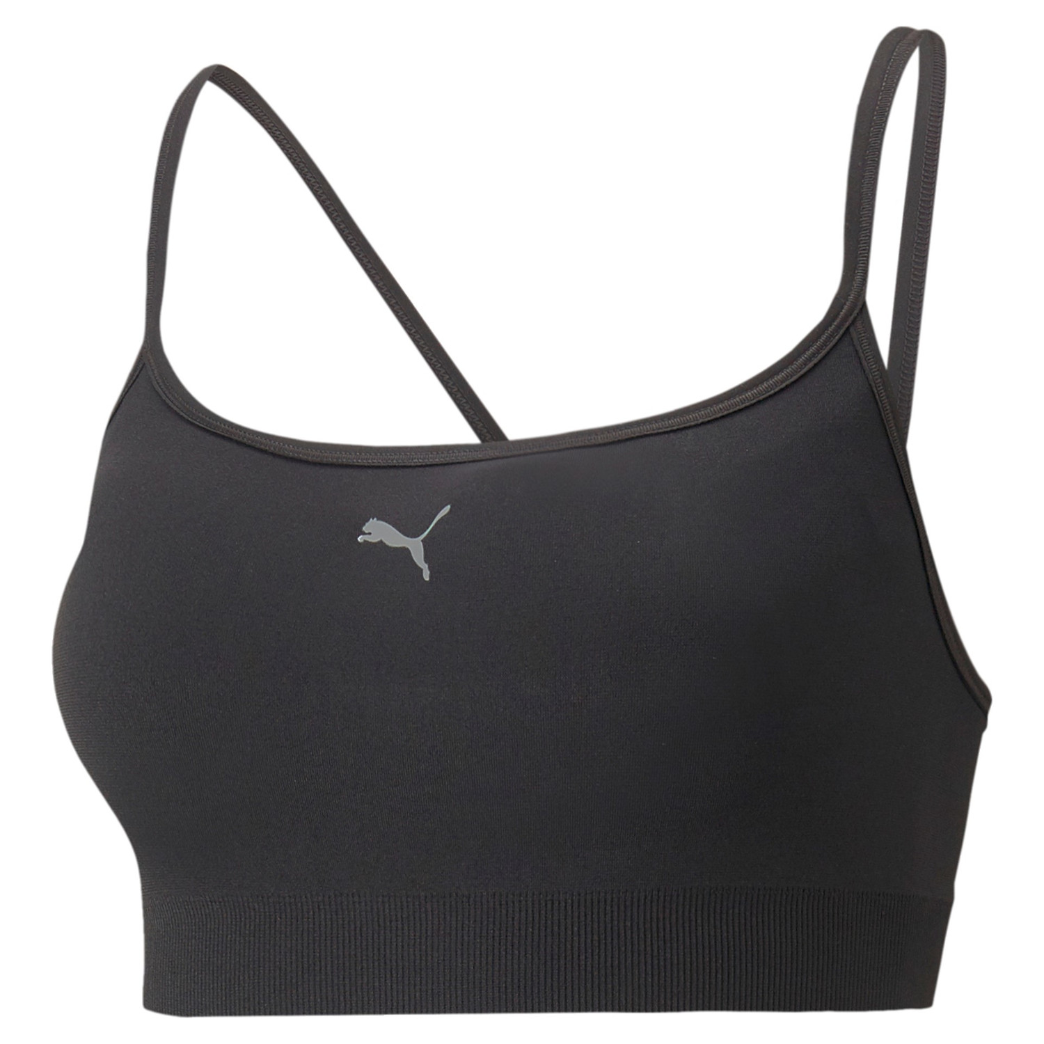 Puma Damen Sport BH Low Impact Studio Seamless Bra. Ihr neuer Go-To-BH zum Üben. Hergestellt aus recycelten, nahtlosen Fasern. Gehen Sie mit diesem eleganten Sport-BH mit Stil, Komfort und Selbstvertrauen ins Studio. Dieser coole, saubere Stil wurde für stoßarmen Halt entwickelt und verfügt über schmale Träger und ein dezentes PUMA-Katzenlogo vorne und in der Mitte. Studio-Style leicht gemacht von PUMA. Material: 94% Nylon, 6% Elasthan.