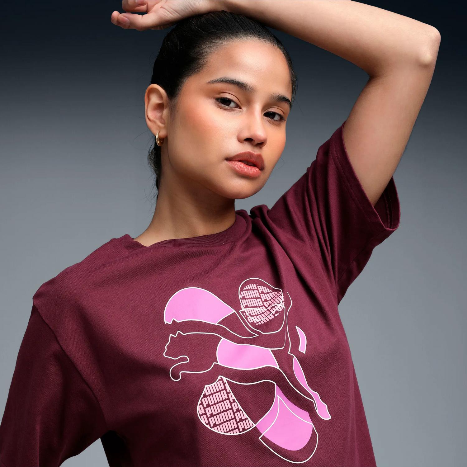 Puma Damen T-Shirt GRAPHIC Relaxed Energy Tee. Setzt ein Statement: Die bequeme PUMA Graphic Tees Kollektion vereint kreative Grafiken mit minimalistischem Design. Von abstrakten Mustern zu ikonischen Logos – jedes Design hat das gewisse Etwas. Wo auch immer du unterwegs bist, diese Grafik-T-Shirts verpassen deinem Look einen entspannten Coolness-Faktor. Material: 100% Baumwolle.