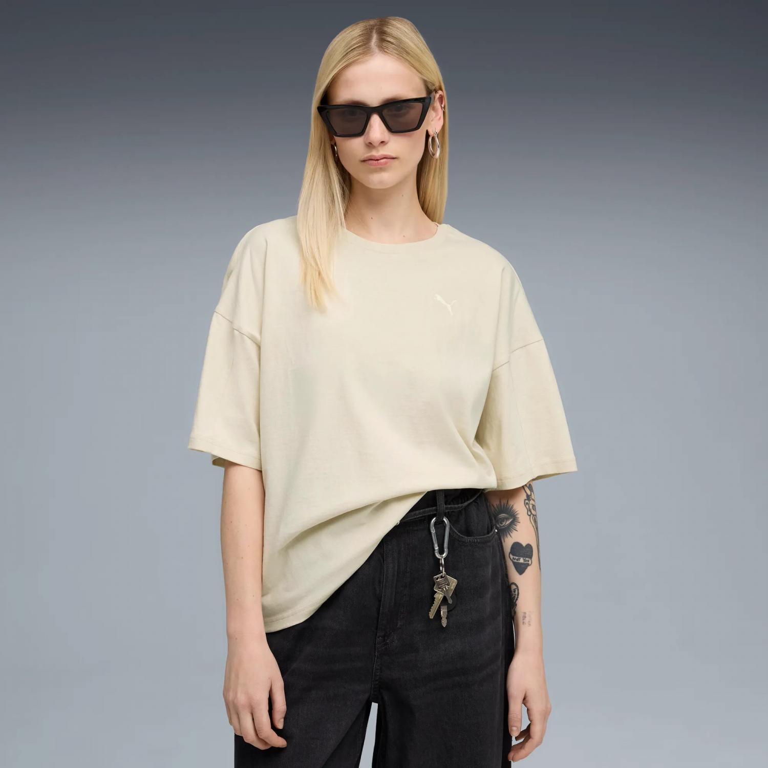 Puma Damen T-Shirt HER Oversized Tee. Die HER Kollektion von PUMA steht für selbstbewussten Stil mit einem frischen, kühnen Touch. Speziell für Frauen entworfen, vereint sie sportlich inspirierte Designs mit müheloser Eleganz. Ob beim Workout, beim Einkaufen oder beim Treffen mit Freunden – mit der HER Kollektion fühlst du dich sicher, wohl und bist für alles gewappnet. Material: 100% Baumwolle.