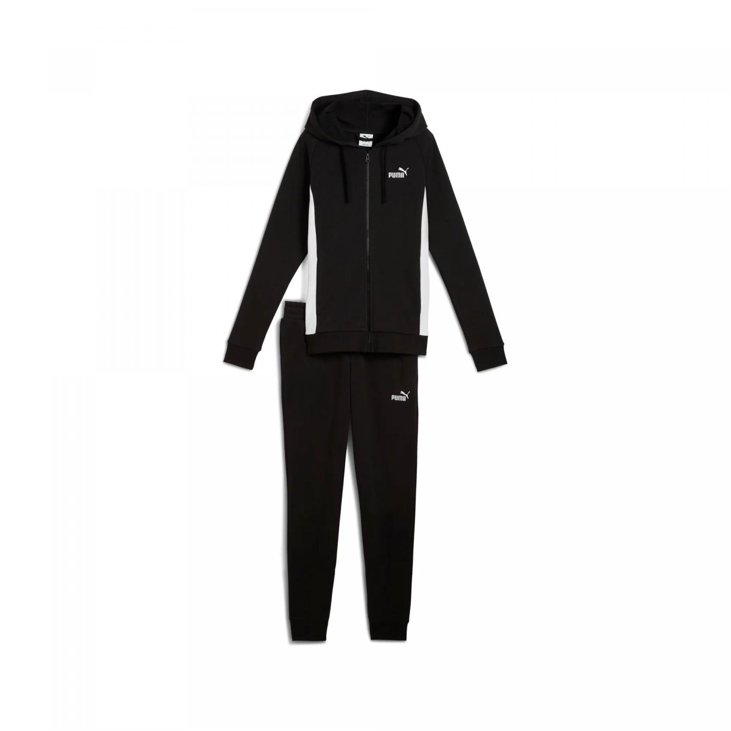 Puma Damen Trainingsanzug Hooded Sweat Suit TR cl. Bring dein Spiel auf ein neues Level – mit dem Jogginganzug von PUMA. Mit dem gestickten PUMA No. 1 Logo und den verstellbaren Kordelzügen ist das Modell für alle gemacht, die Wert auf Style und Komfort legen. Perfekt für Casual-Anlässe oder entspannte Tage. Regular Fit, Regulare Länge. Material: 68% Baumwolle, 32% Polyester.