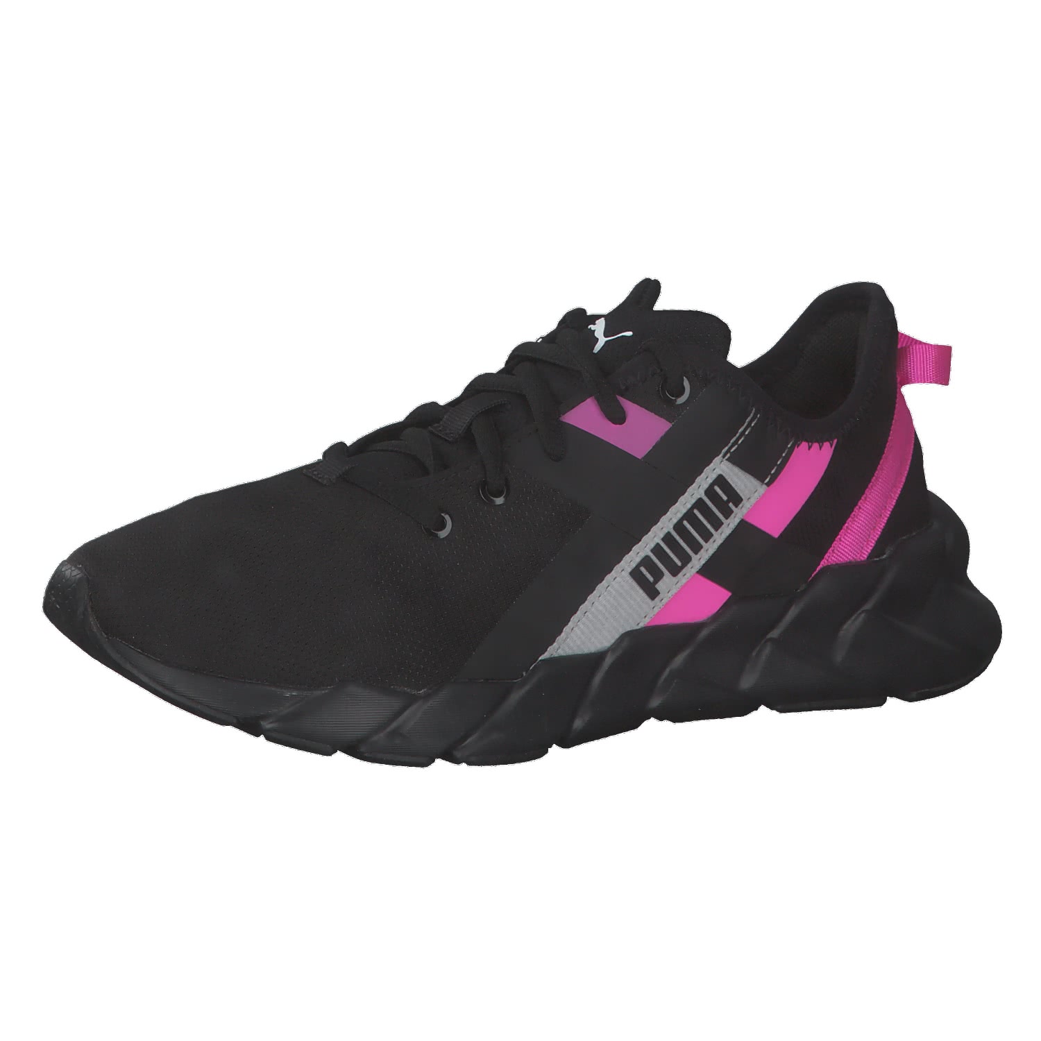 Puma Damen Trainingssschuhe Weave XT Twin. Der Weave XT kommt mit einem frischen und einzigartigen Mittelsohlendesign auf den Markt, das einem Geflecht nachempfunden ist und ein wildes und feminines Design ergibt. Das Obermaterial hat sowohl auf der medialen als auch auf der lateralen Seite ein gewebtes Detail zur Unterstützung sowie eine modische Note. Diese Silhouette ist der perfekte Schuh für innerhalb und außerhalb des Fitnessraums zu einem erschwinglichen Preis. Obermaterial: Textil. Futter und Decksohle: Textil. Laufsohle: Sonstiges Material.