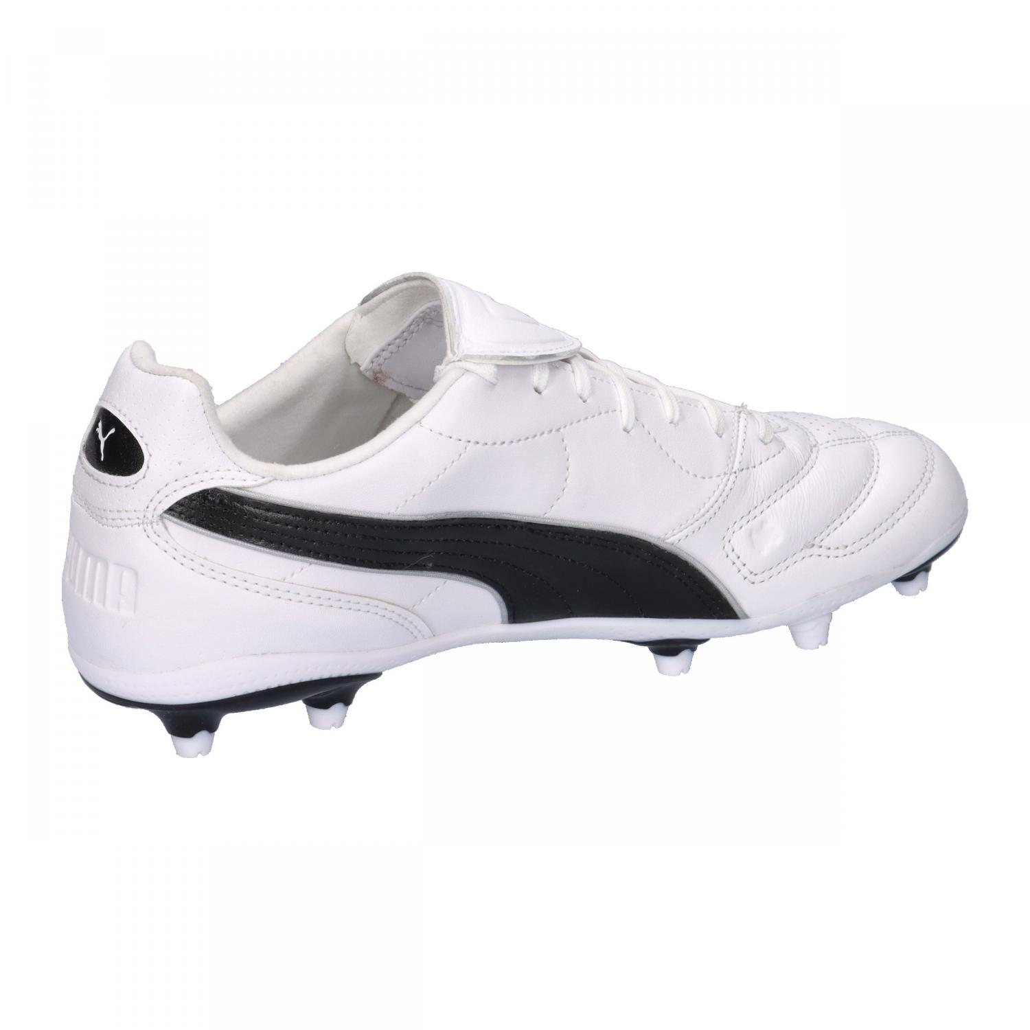 Puma Herren Fussballschuhe KING LIGA FG/AG. Lass dein Spiel für sich sprechen – mit den PUMA Herren Fußballschuhen KING LIGA FG/AG. Das weiche, natürlich anfühlende Obermaterial sorgt für ein hervorragendes Ballgefühl, während sich die adaptive, umklappbare Schuhzunge optimal an deinen Fuß anpasst. Die verbesserte Universal-Passform in regulärer Breite bietet zusammen mit dem abgerundeten Zehenbereich hohen Tragekomfort über die gesamte Spielzeit. Der klassische Schnürverschluss und der flache Absatz garantieren sicheren Halt und Stabilität. Für zusätzliche Dämpfung ist der Schuh mit einer leichten OrthoLite® Innensohle ausgestattet. Die leichte Laufsohle mit konischen Stollen ermöglicht zuverlässige Traktion und Kontrolle auf festem Boden sowie Kunstrasen. Zudem besteht das Obermaterial zu mindestens 20 % aus recycelten Materialien – für mehr Nachhaltigkeit ohne Kompromisse bei Performance und Komfort. Obermaterial: Sonstiges Material, Leder. Futter und Decksohle: Textil. Laufsohle: Sonstiges Material.