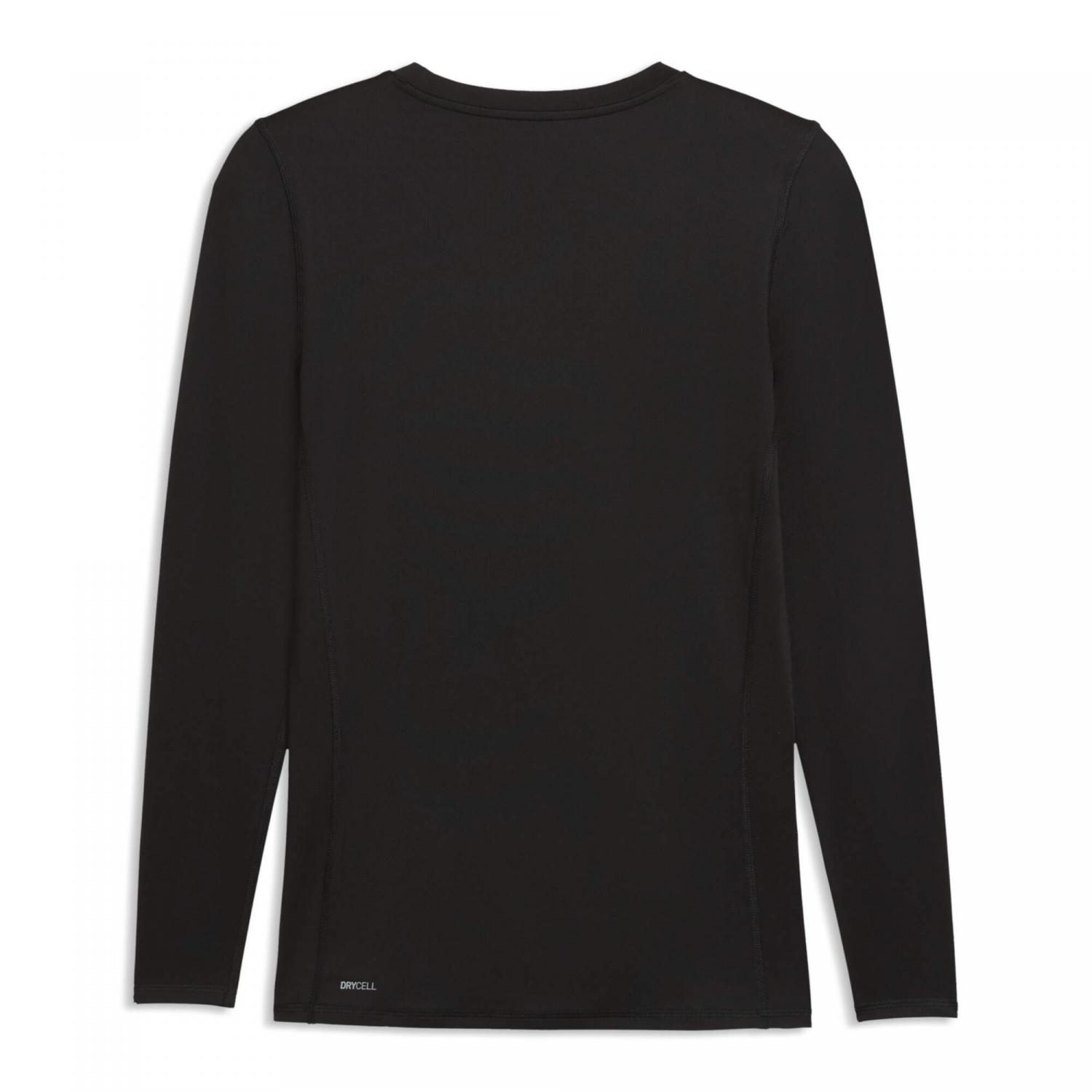 Das Puma Herren Langarmshirt teamLIGA26 Baselayer Tee LS ist die ideale Grundlage für dein Training und Spiel. Das enganliegende Slim-Fit-Design sorgt für eine körpernahe Passform, die deine Bewegungen optimal unterstützt und sich angenehm unter weiterer Sportbekleidung tragen lässt. Dank der integrierten dryCELL Technologie wird Feuchtigkeit effektiv vom Körper abgeleitet, sodass du auch bei intensiven Einheiten trocken und komfortabel bleibst. Das elastische Material mit Elasthan-Anteil bietet dauerhafte Flexibilität und maximale Bewegungsfreiheit auf dem Platz. Ein weiter Rundhalsausschnitt sorgt für zusätzlichen Komfort, während Coverstich-Nähte entlang der Schnittlinien eine optimale Passform und hohe Strapazierfähigkeit gewährleisten. Das dezente, tonale PUMA Cat Logo rundet den sportlichen Look ab. Material: 85% Polyester, 15% Elasthan.