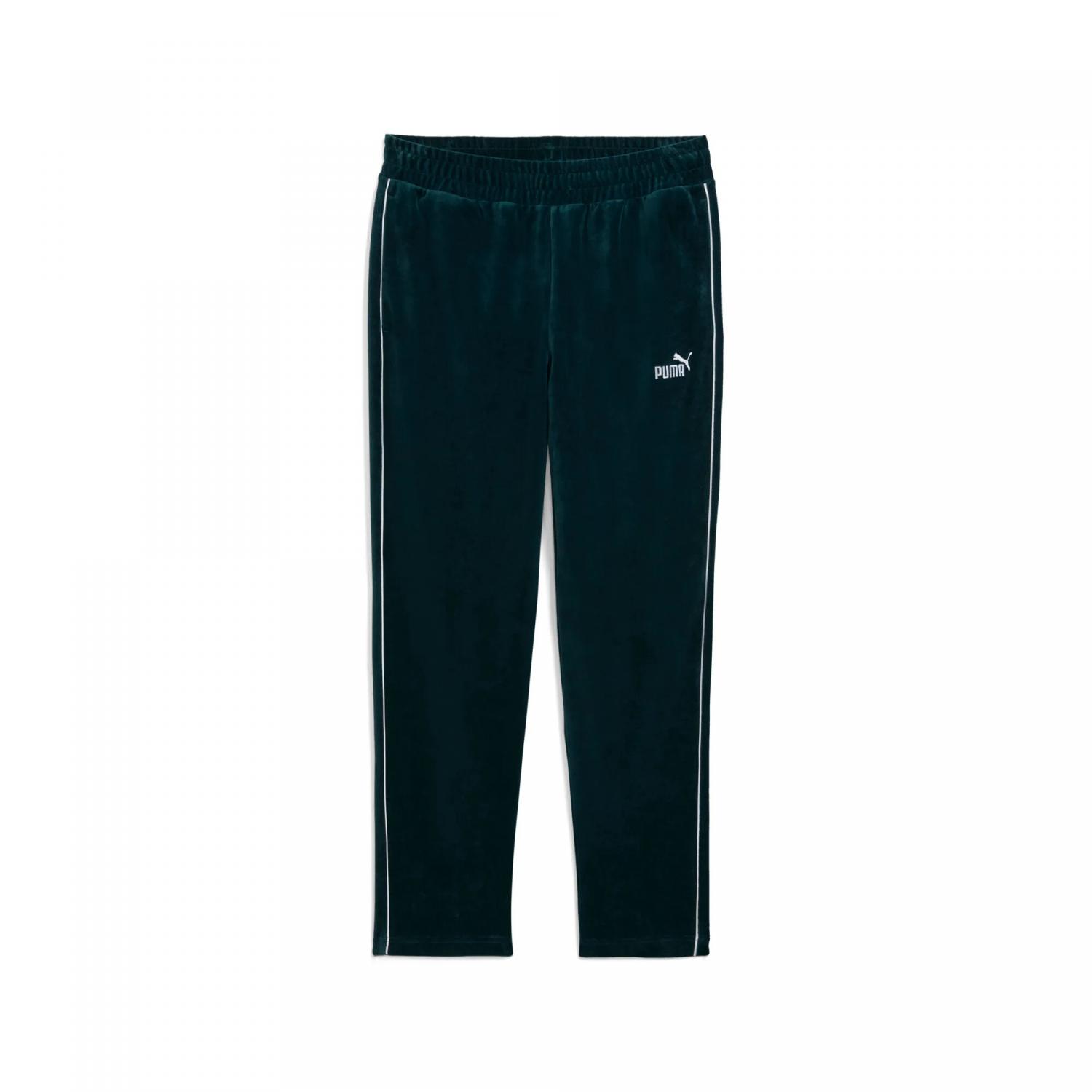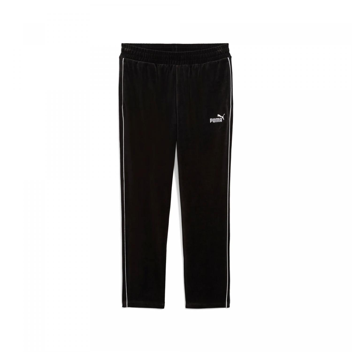 Puma Herren Trainingshose Essentials Elevated Velour Track Pants. Die Essentials Elevated Velour Track Pants von Puma vereinen mühelosen Stil mit maximalem Komfort und sind die perfekte Wahl für Freizeit und Alltag. Diese Track Pants zeichnen sich durch ihre reguläre Passform und Länge aus und bieten dank des elastischen Bundes mit innenliegenden Tunnelzügen eine individuelle Anpassung. Hergestellt aus mindestens 20 % recycelten Materialien, sind sie nicht nur modisch, sondern auch umweltbewusst. Die seitlichen Taschen bieten praktischen Stauraum für kleine Essentials, während die gerippten Bündchen für einen sicheren Sitz sorgen. Mit sportlich inspirierten Details bringt Puma deinen Alltagslook auf ein neues Level und sorgt dafür, dass du dich jederzeit großartig fühlst. Material: 75% Baumwolle, 25% Polyester.