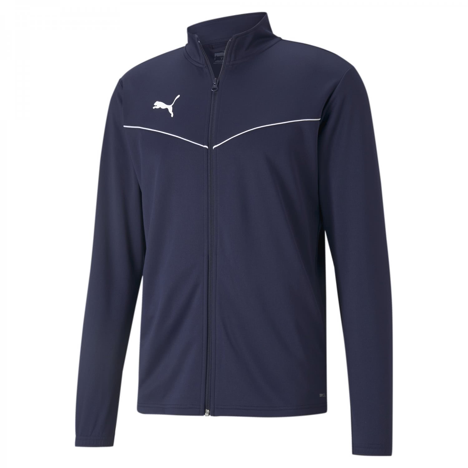 Puma Herren Trainingssjacke teamRISE Training Poly Jacket. Die teamRISE Kollektion kombiniert leistungsstarke Materialien mit modernem Design, um Ihr Team auf allen Ebenen auf die Anforderungen des Spiels vorzubereiten. Stehkragen und durchgehender Reißverschluss. Seitentaschen. Elastische Bündchen. V-förmige Paspel in Konstrastfarben auf der Brust. PUMA Cat Logodruck mit Hitzetransfer-Technik auf der rechten Brust. Regular Fit. Material: 100% Polyester.