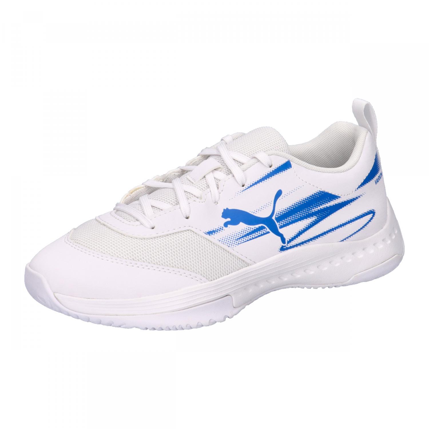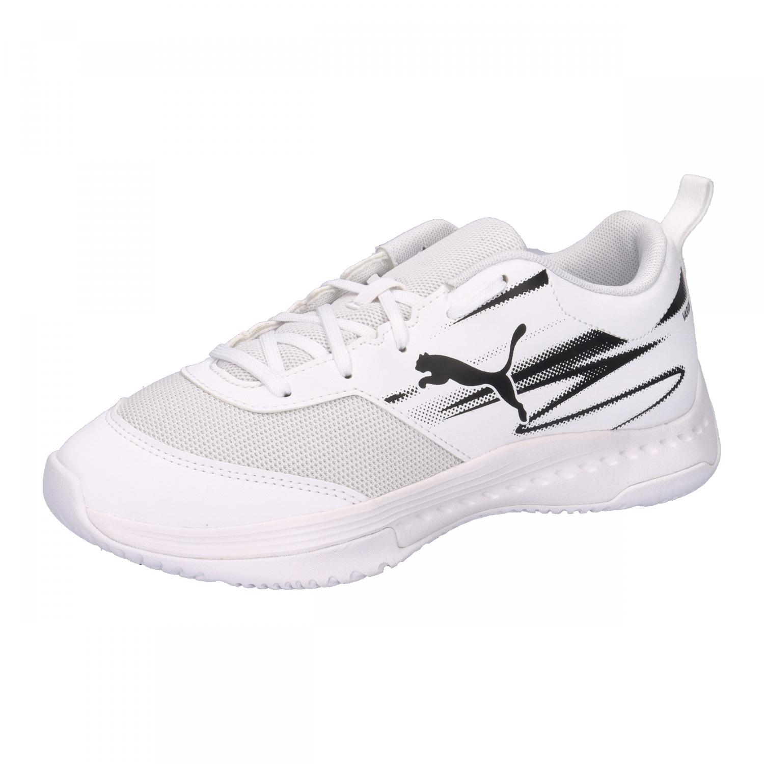 Puma Kinder Hallenschuhe Varion II Jr. Zieh ihn an und verbessere dein Spiel. Der Varion II Jr bietet vielseitigen Support für eine rasante Performance. Variofoam dämpft deinen Schritt, Variomesh hält die Füße frisch und der Stützrahmen stabilisiert schnelle Cuts und Drehungen. SOFTFOAM+ verbessert deinen Step-in-Komfort auf dem Weg zum Sieg. Obermaterial: Sonstiges Material, Textil. Futter und Decksohle: Textil. Laufsohle: Sonstiges Material.