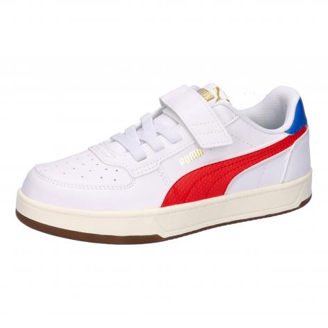 Puma Kinder Sneaker Caven 2.0 Retro AC+ PS. Puma Caven 2.0 ist ein nostalgisches, vom College inspiriertes Design, das sich an den College-Campus und der College-Kleidung der 90er-Jahre orientiert und Sie in das amerikanische Vintage-College-Feeling eintauchen lässt. Das hochwertig konstruierte Obermaterial bleibt der PUMA-DNA treu und verfügt über eine Basis aus Kunstleder mit weichem Synthetik-Ösen- und Zehenüberzug sowie Perforationsdetails am Schuhblatt. Mit Caven 2.0 verkörpern Sie die Rolle Ihres Lieblingscharakters, vom coolen Straßensportkind bis zum Sporthelden, den jeder bewundert. Die SoftFoam+-Einlegesohle bietet hervorragende Dämpfung und optimalen Komfort für jeden Schritt Ihres Tages. Obermaterial: Sonstiges Material. Futter und Decksohle: Textil. Laufsohle: Sonstiges Material.