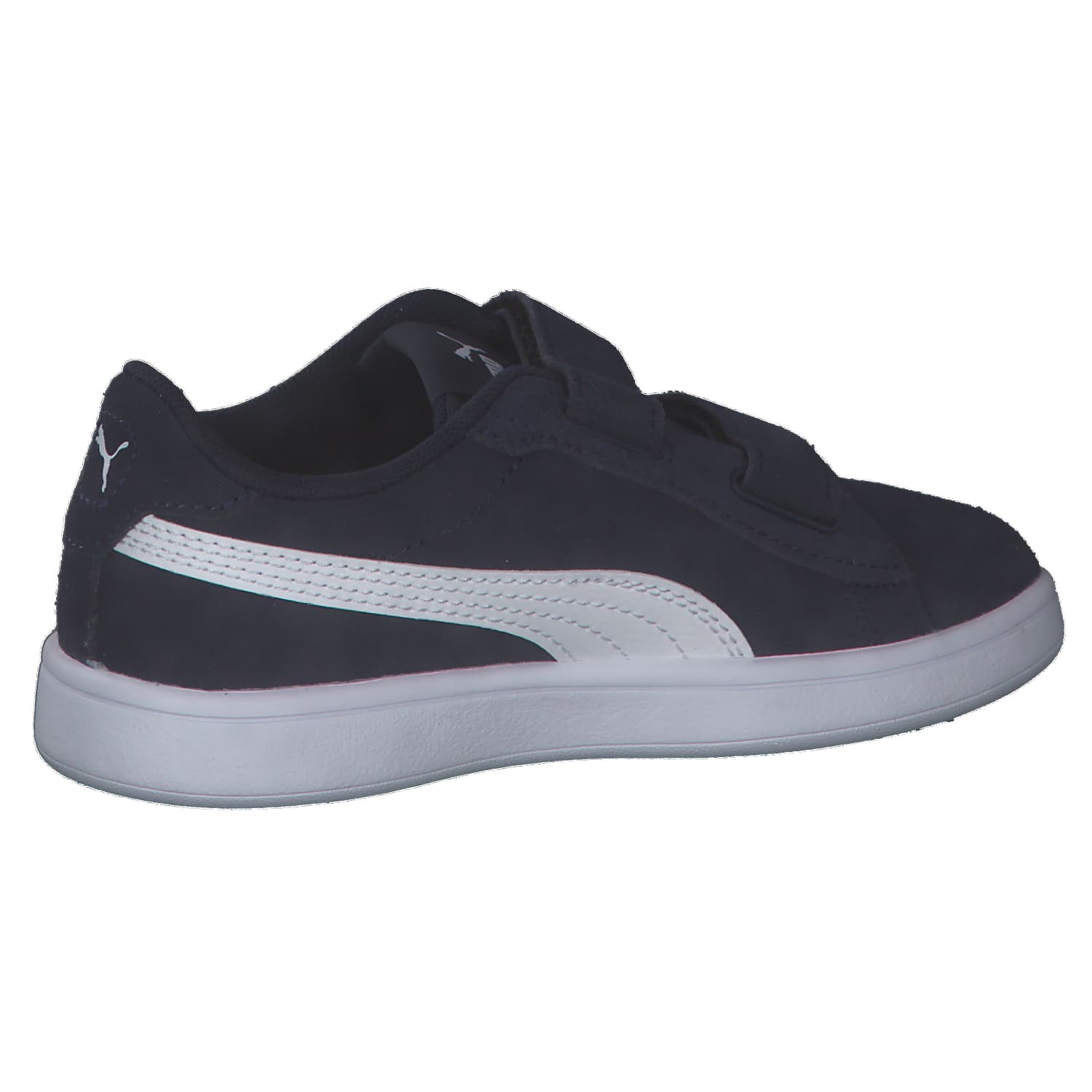 Puma Kinder Sneaker Smash 3.0 SD V PS. Der PUMA Smash 3.0 ist die nächste Generation in der legendären PUMA Smash-Franchise. Diese aktualisierte Ausführung verfügt über ein Obermaterial aus Vollwildleder mit einem aktualisierten Design mit Ösen, einen durchgenähten, gepolsterten Kragen und ein neues Fersendesign mit dem FOT Cat-Branding, um diesem klassischen Look eine frische Note zu verleihen. Die SoftFoam+-Einlegesohle, die hervorragende Dämpfung und optimalen Komfort bietet für jeden Schritt Ihres Tages. Obermaterial: Sonstiges Material;Textil. Futter und Decksohle: Textil. Laufsohle: Sonstiges Material.