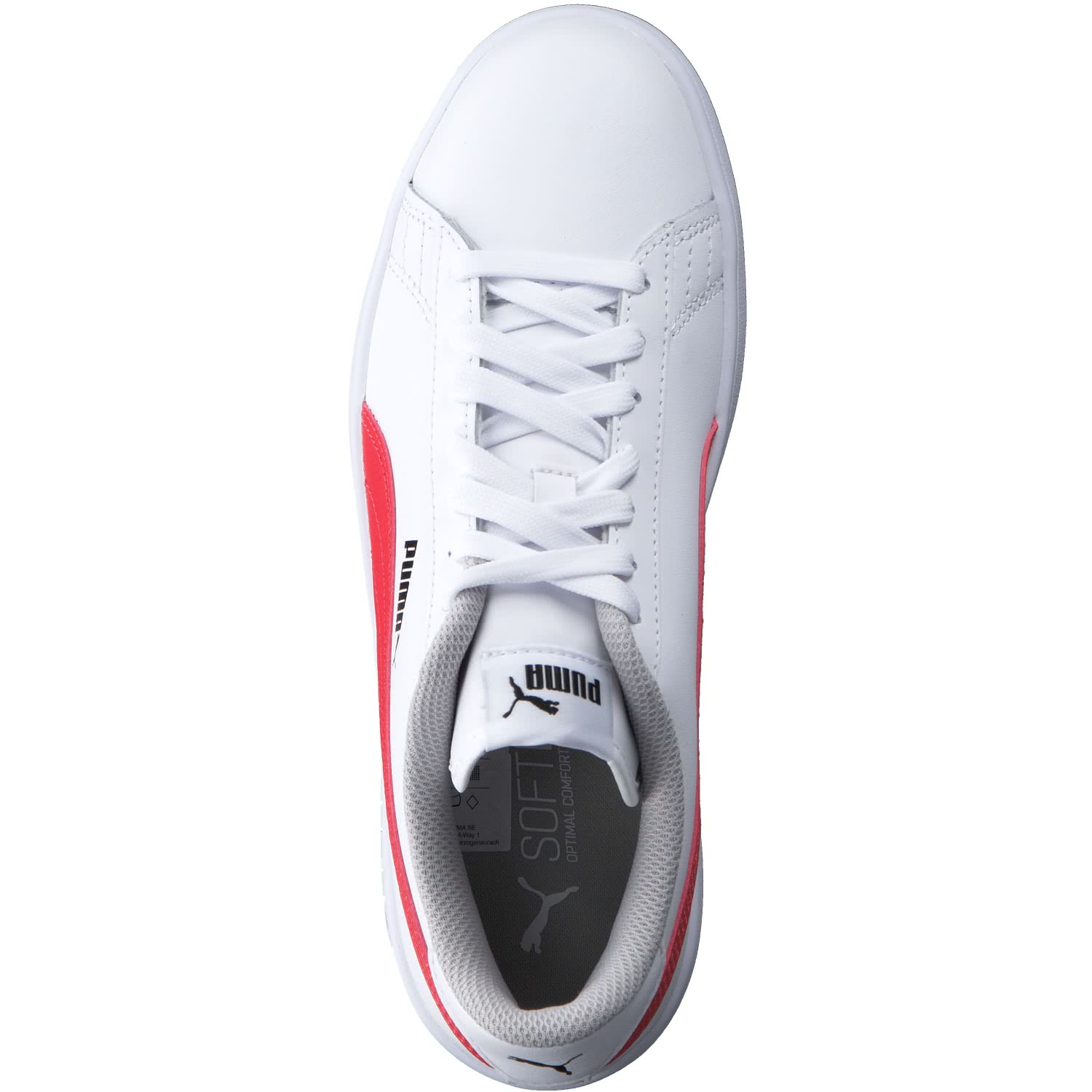 Puma Kinder Sneaker Smash V2 L Jr. Der PUMA Smash v2 L Jr ist eine Neuinterpretation des klassischen PUMA Smash. Der von Tennisschuhen inspirierte Sneaker sorgt mit seinem weichen Leder-Obermaterial für eine gute Passform. Die überarbeitete Außensohle bietet guten Grip und Stabilität und verleiht dem Schuh einen cleanen Look. Ein Klassiker für jeden Tag! Obermaterial: Leder, Sonstiges Material. Futter und Decksohle: Textil. Laufsohle: Sonstiges Material.