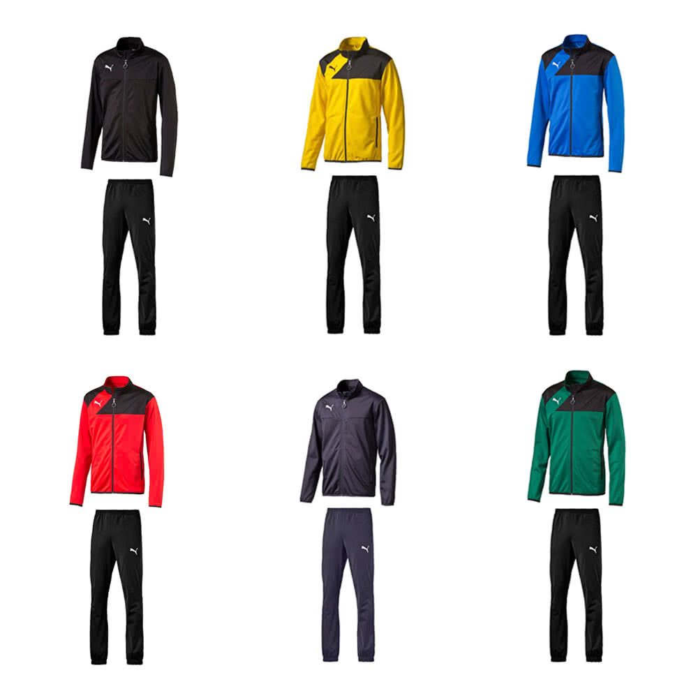 Puma Trainingsanzug Esquadra. Die Trainingsjacke Esquadra Poly Jacket mit Ihrer Vereinsfarbe. Die Jacke hat einen durchgehenden Reißverschluss, zwei Seitentaschen mit Reißverschluss und ein Puma-Logo auf der Brust. Die elastische Bündchen und Saum sorgen für die optimale Passform. Die Hose verfügt Seitentaschen mit Reißverschluss bieten Stauraum. Ein Reißverschluss am Bein vereinfacht das An- und Ausziehen. Die Hose bietet tolle Bewegungsfreiheit und eine ergonomische Passform. Material: 100% Polyester.