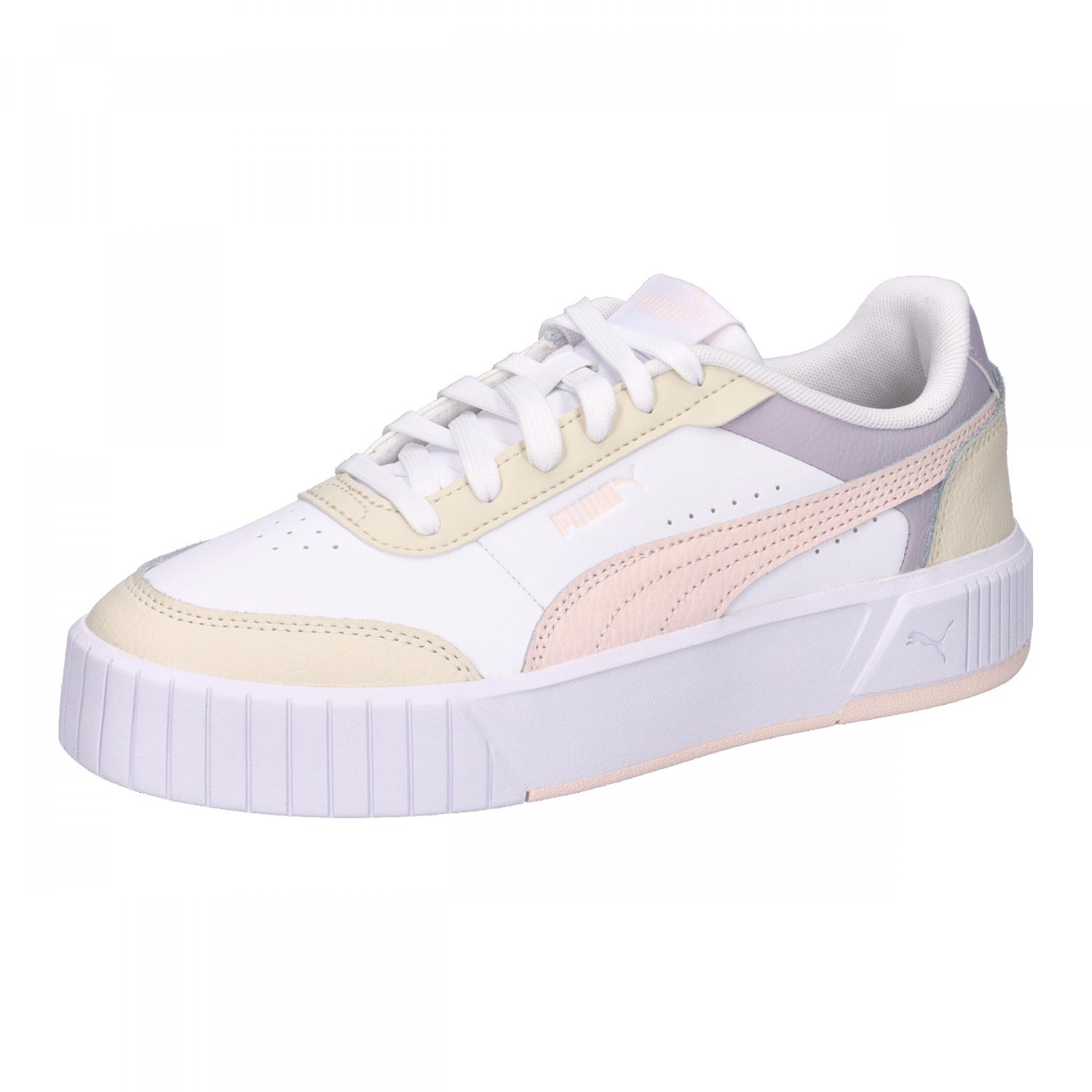 Puma Mädchen Sneaker Carina Mia Jr. Erleben Sie Tennis-inspirierte Mode mit dieser ikonischen Silhouette, die überall ein Statement setzt. Der Carina Mia präsentiert sich in einer frischen Interpretation der Carina-Reihe und besticht durch ein Obermaterial aus Kunstleder mit PU-beschichteten Overlays und Formstrip. Mit seinem leicht erhöhten Design ist dieser Look perfekt für stilvolle Besorgungen! Obermaterial: Sonstiges Material. Futter und Decksohle: Textil. Laufsohle: Sonstiges Material.
