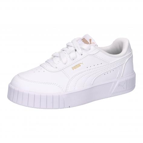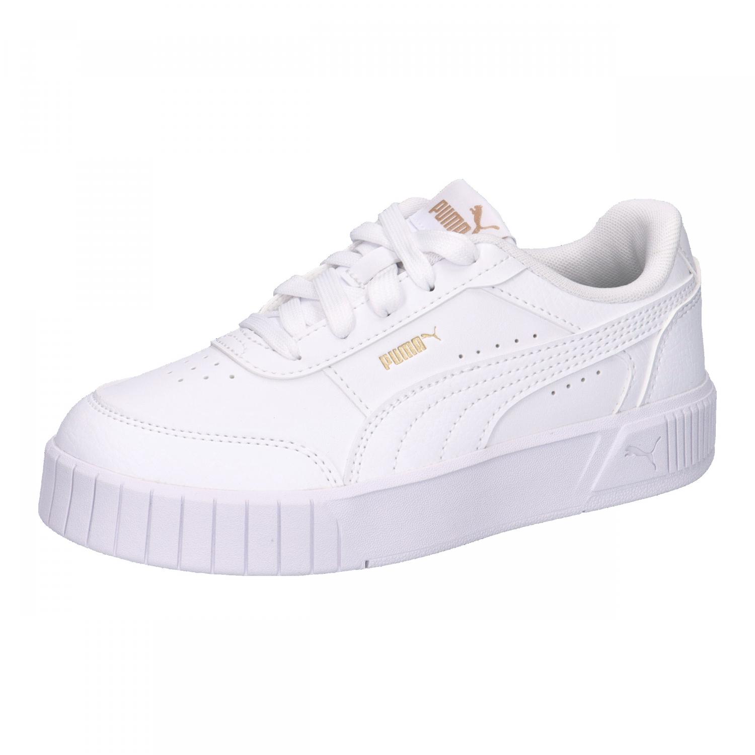 Puma Mädchen Sneaker Carina Mia PS. Erleben Sie Tennis-inspirierte Mode mit dieser ikonischen Silhouette, die überall ein Statement setzt. Der Carina Mia präsentiert sich in einer frischen Interpretation der Carina-Reihe und besticht durch ein Obermaterial aus Kunstleder mit PU-beschichteten Overlays und Formstrip. Mit seinem leicht erhöhten Design ist dieser Look perfekt für stilvolle Besorgungen! Obermaterial: Sonstiges Material. Futter und Decksohle: Textil. Laufsohle: Sonstiges Material.