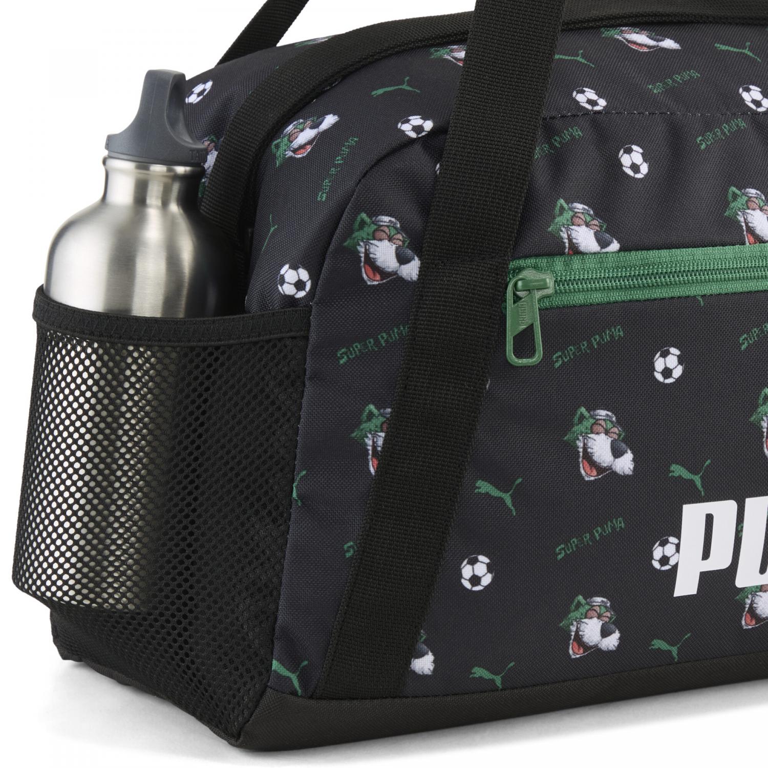 Puma Sporttasche Phase Super Puma AOP Extra Small Sports Bag. Freuen Sie sich auf wertvolle Momente mit der PUMA Phase Sporttasche! In verschiedenen Fächern können Sie alles ordentlich verstauen und behalten stets den Überblick. Ob mit dem verstellbaren Schultergurt oder mit den beiden Griffen in der Hand – mit der Sporttasche genießen Sie einen hohen Tragekomfort. Auch stilistisch überzeugt die PUMA Tasche mit einem modernen und sportlichen Design. Maße: Breite ca. 40 cm, Höhe ca. 20 cm, Tiefe ca. 20 cm. Gewicht: ca. 250 g. Volumen: 17 L. Material: 100% Polyester.