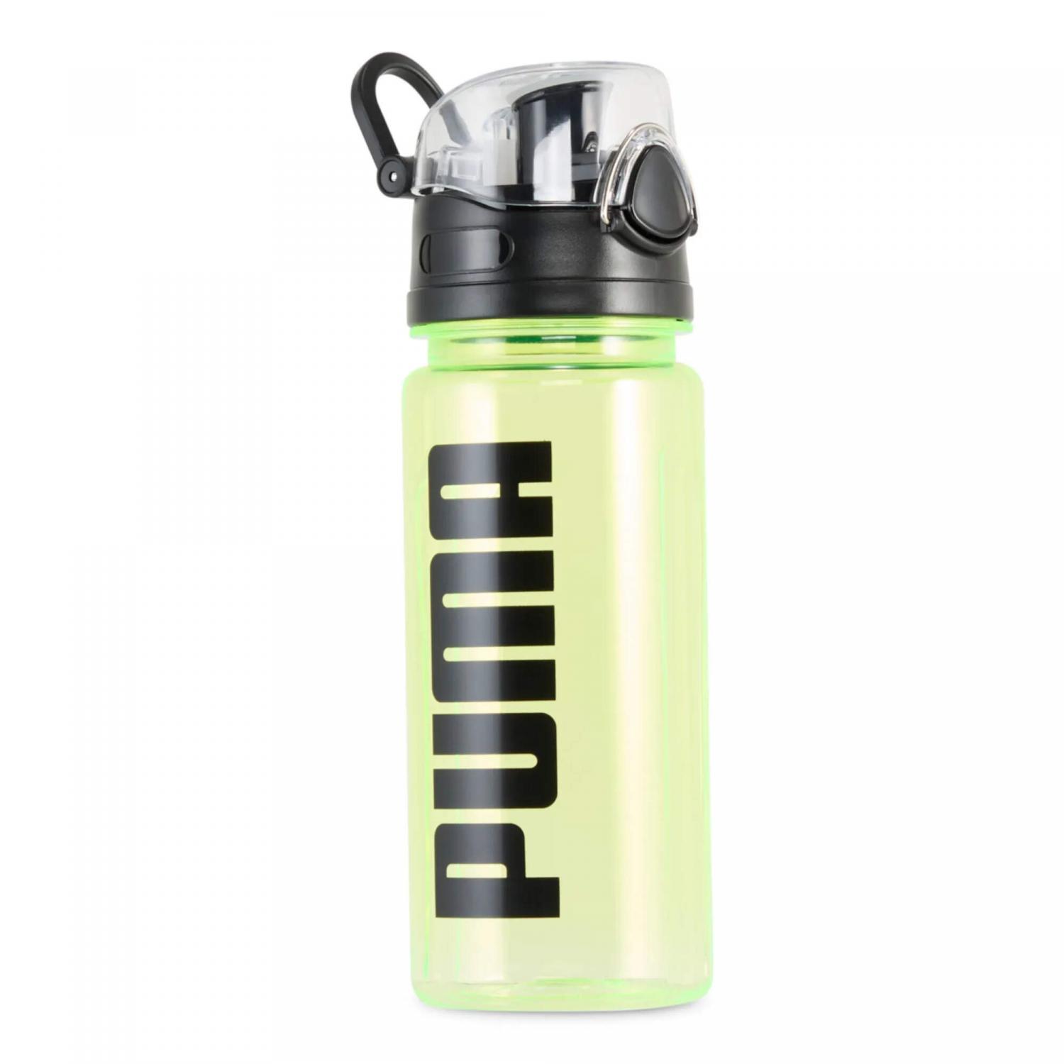 Puma Trinkflasche TR Bottle Sportstyle. Aus dieser Wasserflasche zu trinken ist die perfekte Art, sich während des Trainings mit Flüssigkeit zu versorgen. Ihre zeitlose Form und das vertikale PUMA Branding sorgen für eine starke Optik, der tropfsichere Verschluss für einen sicheren Transport. Klassische Trinkflasche mit Schraubverschluss. Auslaufsicheres Design. Durchsichtiger Klappdeckel mit Sicherheitsverschluss aus Metall. Große Trinköffnung. Durchsichtiger Flaschenkörper. Kleiner Tragegriff aus Plastik. Vertikales PUMA Branding. Fassungsvermögen: 600ml. Material: 50% Tritan, 30% Polypropylen, 20% Styrol-Acrylnitril-Copolymere.