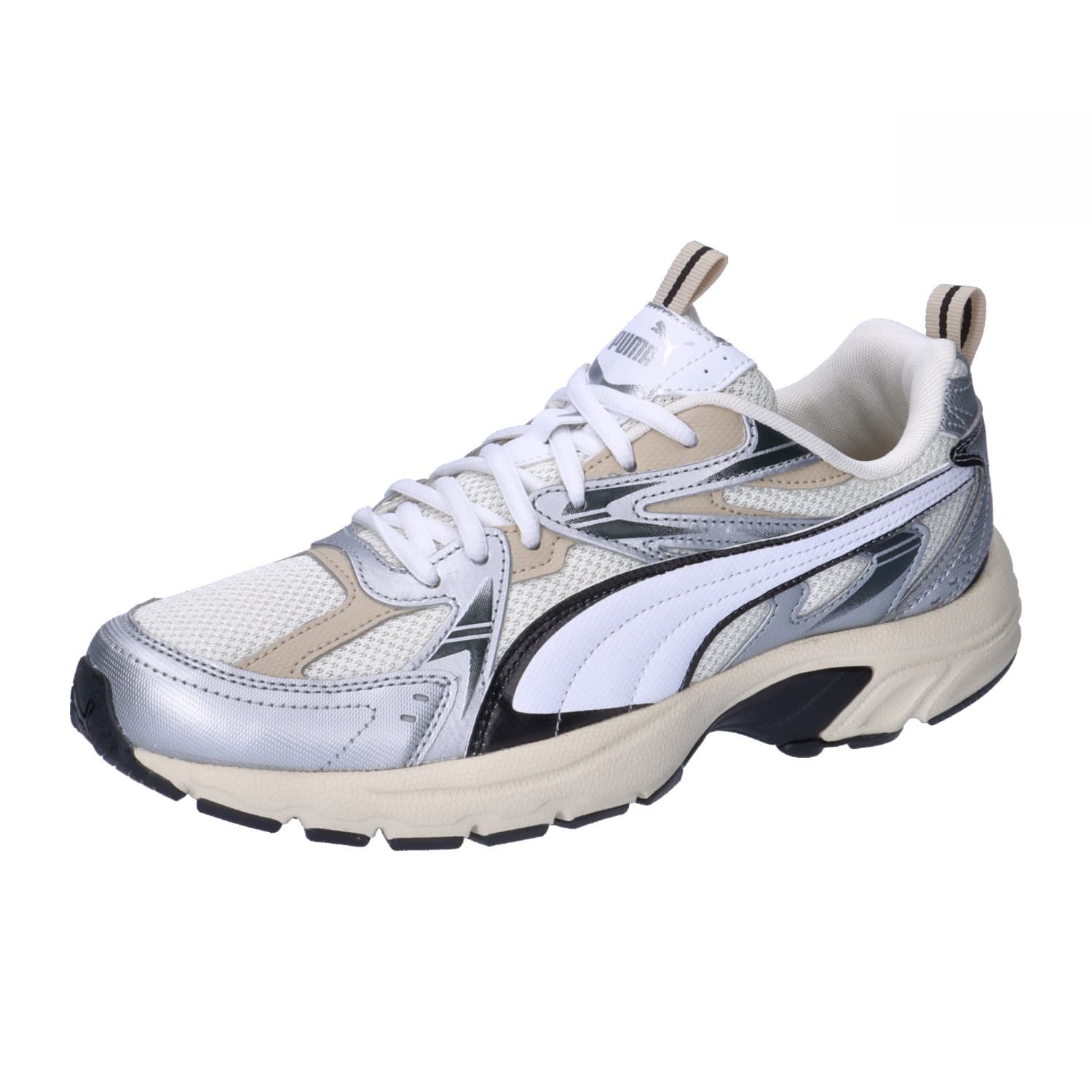 Puma Unisex Sneaker Milenio Tech. Der Milenio Tech ist von den Bestsellern der Jahrtausendwende inspiriert und präsentiert sich daher im Stil der Nullerjahre. Dieser Schuh aus luftigem Mesh mit hellen Metallic-Tönen sieht genauso gut aus, wie er sich anfühlt. Obermaterial mit Air Mesh. IMEVA-Zwischensohle. Gummilaufsohle. PUMA Formstrip an der Innen- und Außenseite. PUMA No. 1 Logo auf der Schuhzunge. PUMA Cat Logo an der Ferse. Obermaterial: Sonstiges Material, Textil. Futter und Decksohle: Textil. Laufsohle: Sonstiges Material.
