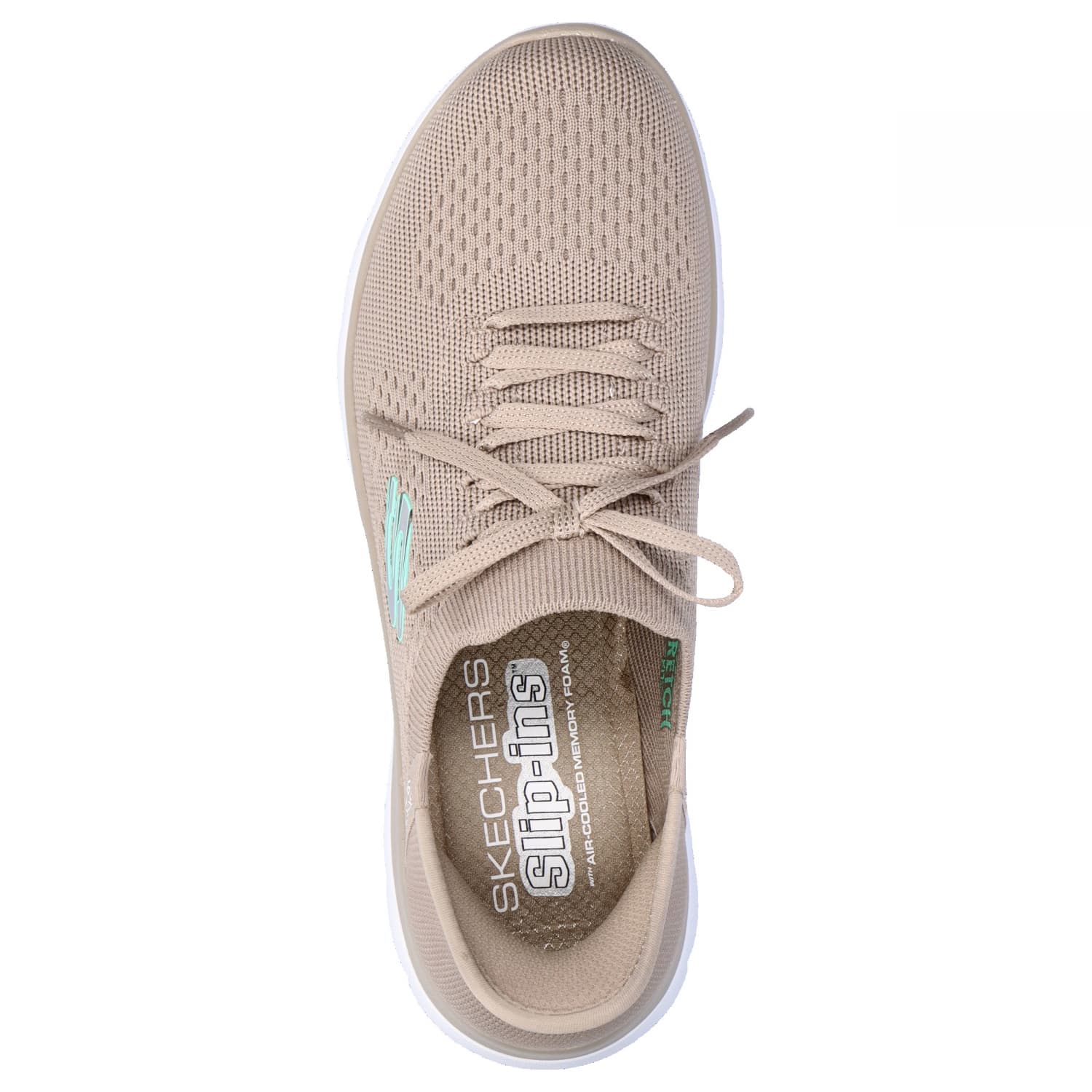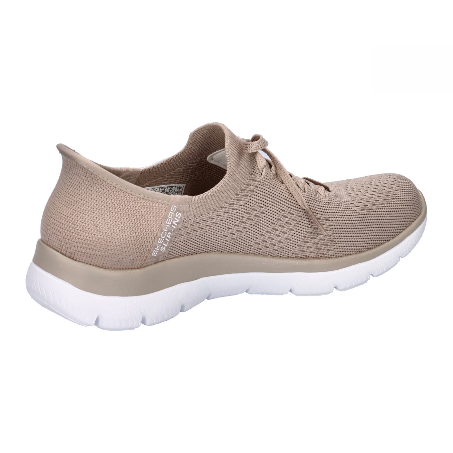 Skechers Damen Sneaker Slip-ins Summits-New Daily. Steigere das Tempo mit den praktischen und ultrabequemen Skechers Hands Free Slip-Ins®: Summits – New Daily. Dieses vegane Modell ist mit dem exklusiven Skechers Fersenkissen (Heel Pillow) ausgestattet und verfügt über ein Stretch Fit-Obermaterial aus Funktionsstrick mit fester Schnürung, eine Zwischensohle mit Metallbesatz und eine gepolsterte Skechers Air-Cooled Memory Foam Komfort-Innensohle. Obermaterial: Textil. Futter und Decksohle: Textil. Laufsohle: sonstiges Material