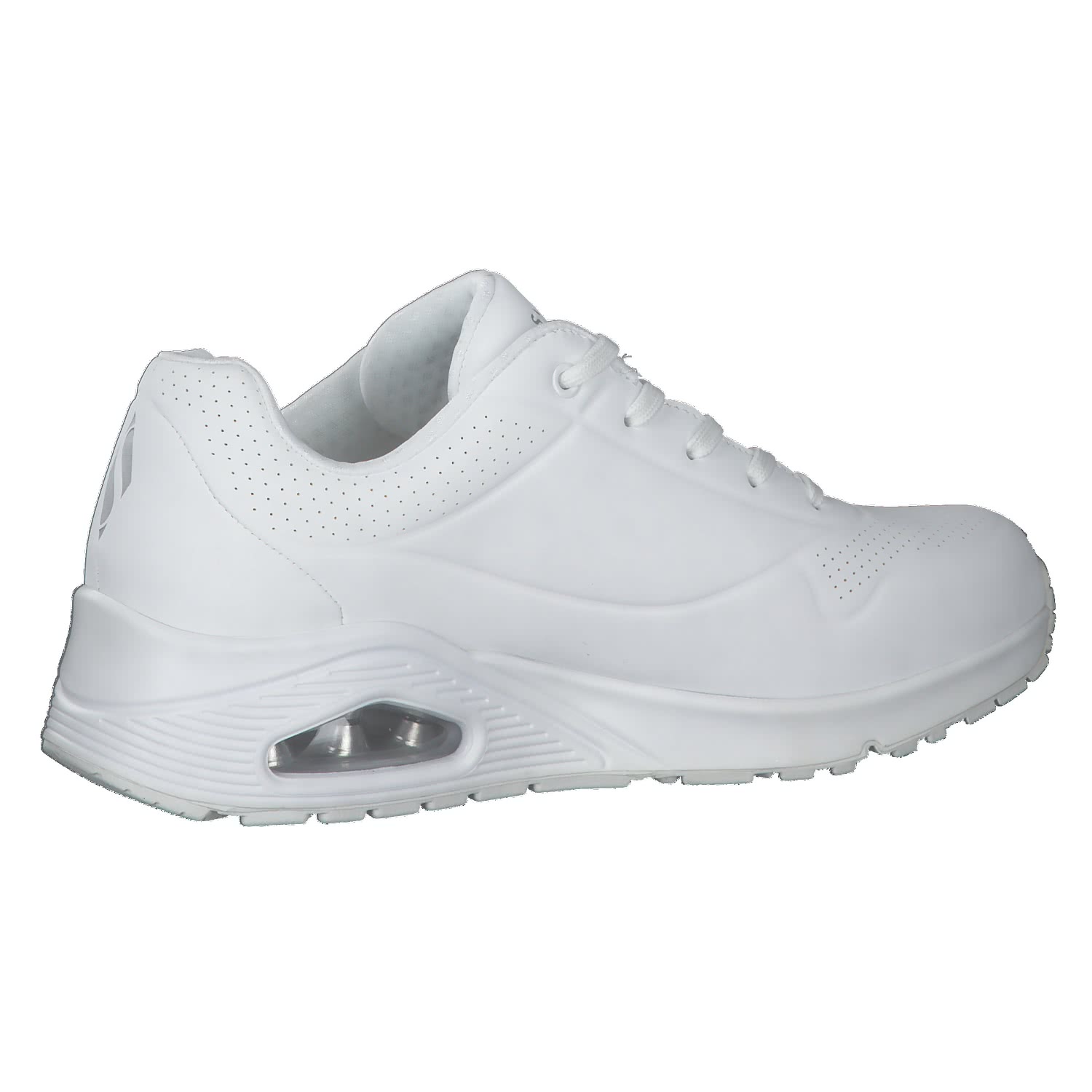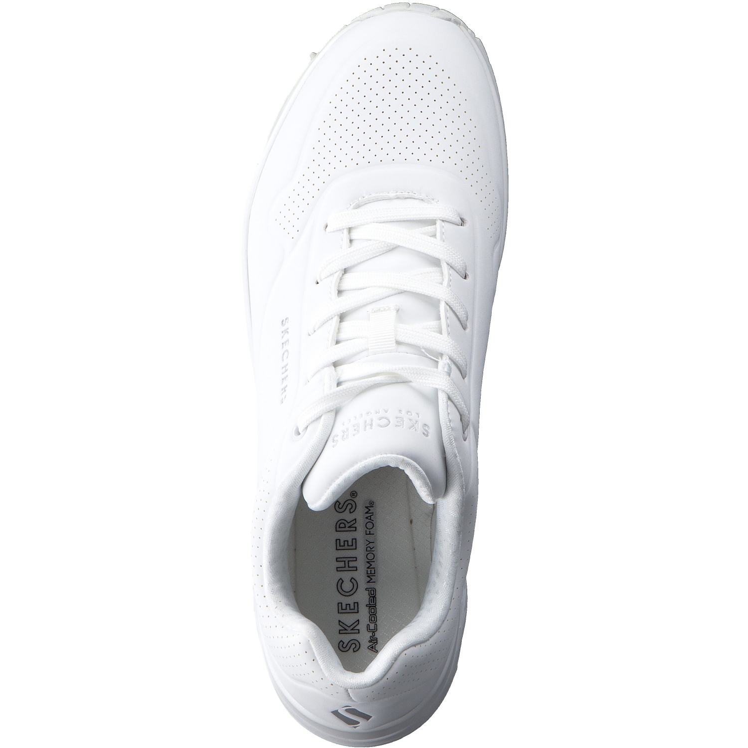 Skechers Damen Sneaker Uno - Stand on Air. Klassischer luftgepolsterter Look trifft auf modernen Komfort im SKECHER Street Uno - Stand on Air Schuh. Klassischer, modischer Sneaker mit Schnürung, einem Obermaterial aus Synthetik mit Lederstruktur sowie Ziernähten und Perforations-Akzenten. Air Cooled Memory Foam Einlegesohle, sichtbare Zwischensohle mit Luftkissen-Dämpfung. Glattes Obermaterial aus Synthetik mit Lederstruktur. Sportlich-modischer Schnürsneaker. Dekorative Ziernähte. Perforierungen am Frontpanel und am Schaft sorgen für Kühlung. Geprägte Seitendetails. SKECHER Street S Logo auf dem Fersenpanel. Schnürschuh. Schaft und Zunge gepolstert. Weiches Futter aus Stoff. Gepolsterte Einlegesohle aus Air Cooled Memory Foam. Klassische Zwischensohle mit geprägtem Strukturdetail. Zwischensohle mit sichtbarer Luftdämpfung und stoßdämpfender Fersenpolsterung. Absatzhöhe: 3,8 cm. Flexible Traktionslaufsohle. Obermaterial: Sonstiges Material. Futter und Decksohle: Textil. Laufsohle: Sonstiges Material.