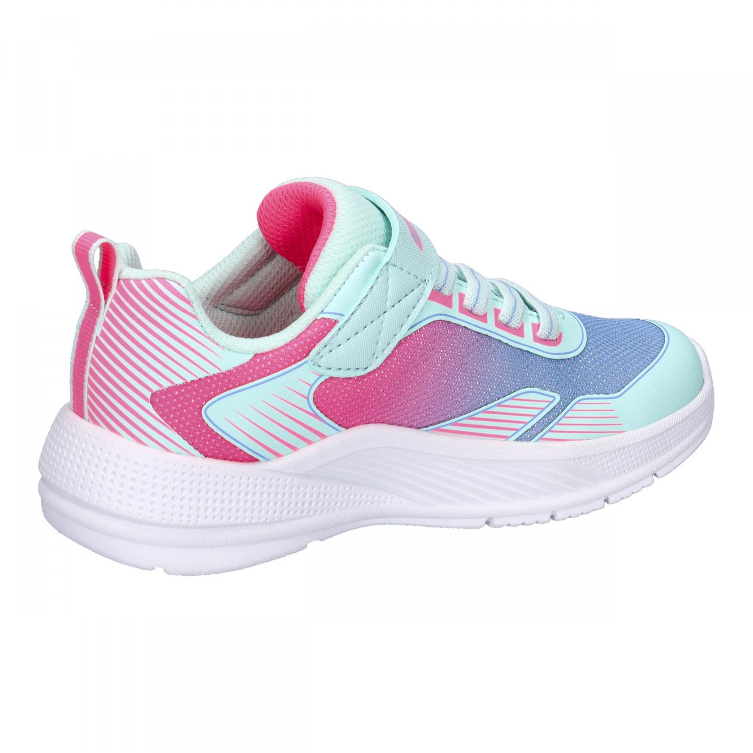 Der Skechers Microspec Advance – Oasis Point ist ein moderner und komfortabler Sneaker für Kinder, der mit seinem sportlichen Design und seiner hohen Alltagstauglichkeit überzeugt. Das Obermaterial besteht aus atmungsaktivem Mesh mit schimmerndem Farbverlauf und robusten 3D-Print-Overlays, die dem Schuh einen trendigen Look verleihen. Elastische Schnürsenkel in Kombination mit einem praktischen Klettverschluss sorgen für ein einfaches An- und Ausziehen und bieten gleichzeitig einen sicheren Halt beim Spielen und Toben.Im Inneren sorgt eine weich gepolsterte Innensohle für angenehmen Tragekomfort, während das textile Innenfutter ein gutes Fußklima gewährleistet. Die flexible und rutschfeste Laufsohle aus Synthetikmaterial bietet zuverlässige Traktion auf verschiedenen Untergründen und unterstützt die natürliche Bewegung des Kinderfußes. Mit seinem leichten Gewicht und dem leicht erhöhten Absatz ist der Microspec Advance – Oasis Point ideal für Schule, Freizeit und Alltag geeignet.Erhältlich in verschiedenen fröhlichen Farbvarianten – wie Blau-Mehrfarbig, Schwarz-Multi oder Aqua-Multi – verbindet dieser Sneaker Style und Funktion auf perfekte Weise. Der Skechers Microspec Advance – Oasis Point ist somit der ideale Begleiter für aktive Kinder, die Wert auf Komfort, Qualität und einen coolen Look legen.Obermaterial: Textil, Sonstiges Material. Futter und Decksohle: Textil. Laufsohle: Sonstiges Material.