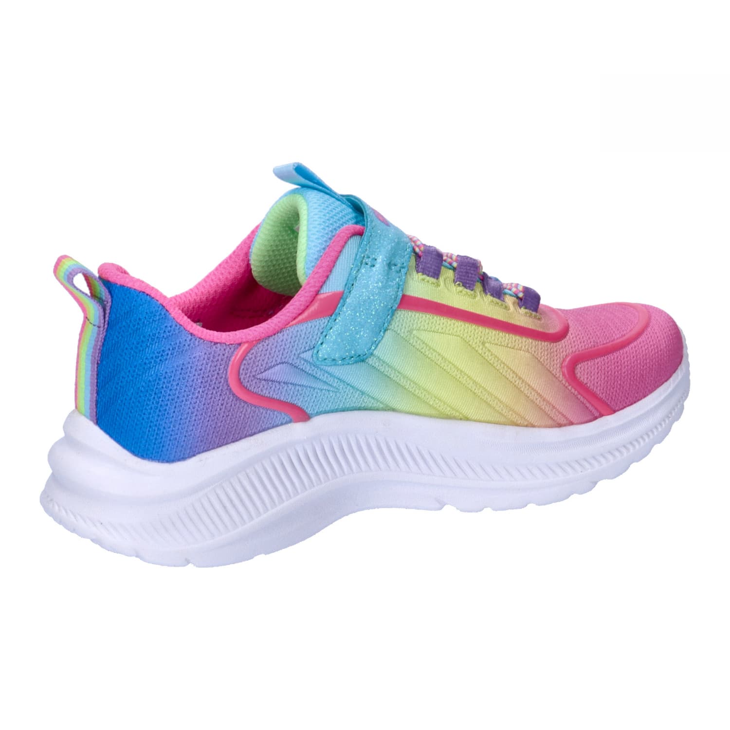 Skechers Mädchen Sneaker Rainbow Cruisers. Glänze im farbenfrohen Design des Skechers Rainbow Cruisers. Dieses Modell mit Leuchteffekt verfügt über ein Obermaterial aus Webstoff mit Farbverlauf, eine Stretch-Schnürung und einen Ristriemen mit Ein-/Ausschalttaste. Zwischensohle mit Leuchteffekt. Obermaterial: Textil; Sonstiges Material. Futter und Decksohle: Textil. Laufsohle: Sonstiges Material.