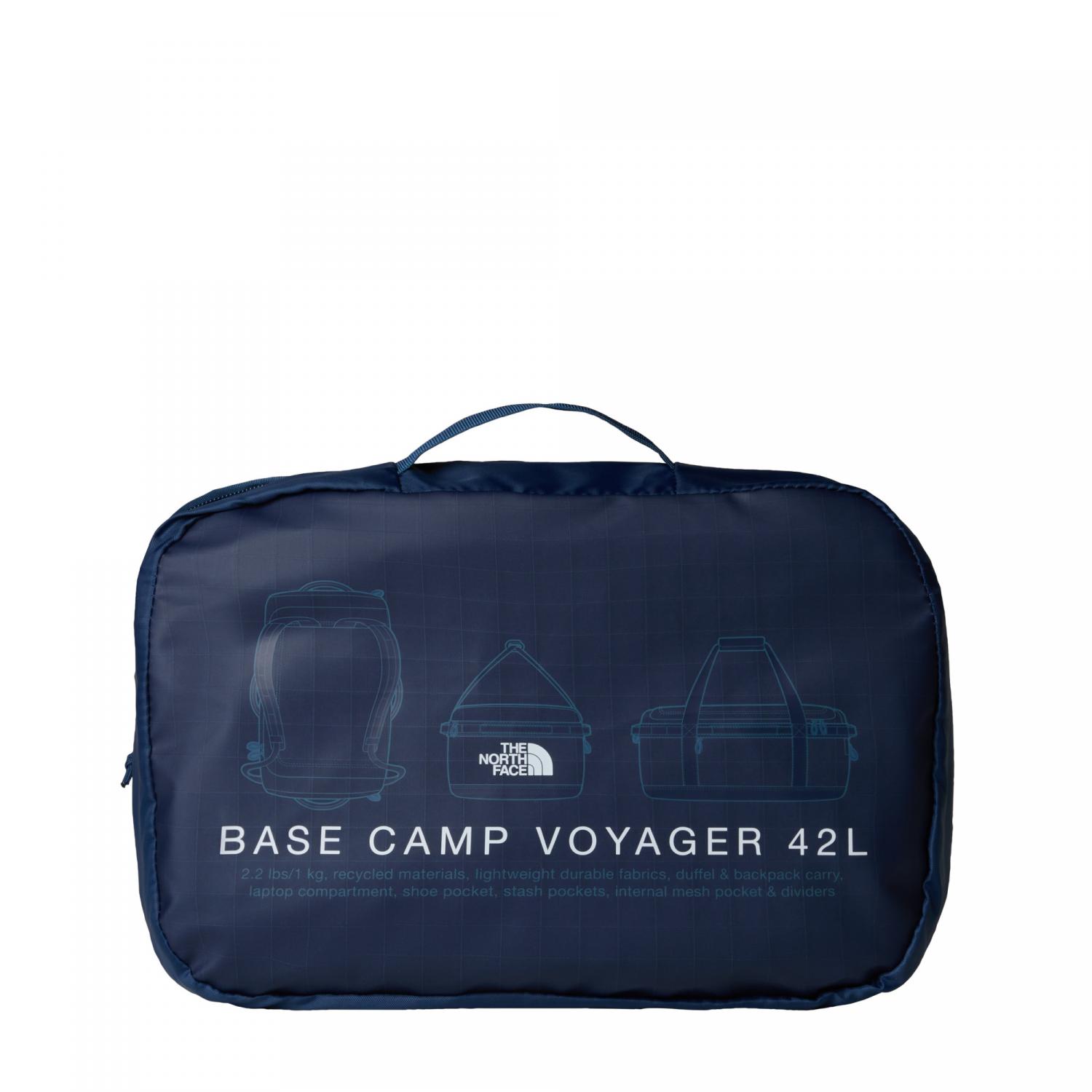 The North Face Reisetasche Base Camp Voyager Duffel 42L. Unsere legendäre Base Camp Duffel-Tasche war Inspiration für die neue Voyager. Sie ist genauso handlich, wiegt aber weniger und hat sogar mehr Fächer für deinen Kram - mit klarem Fokus auf Reisen statt auf Expeditionen. Du trägst sie wie einen Rucksack oder eine Duffel-Tasche. Sie hat ein Laptopfach, einen verstellbaren und herausnehmbaren Teiler im Hauptfach, der es einfach macht, saubere und schmutzige Wäsche auseinanderzuhalten und - um hektisches Suchen zu vermeiden - eine externe RV-Tasche für Handy und Pass. Übrigens: hergestellt aus recyceltem Material. Volumen: 42 Liter. Maße: 58,4cm x 37,3cm x 25,9cm. Material: 100% Polyester.