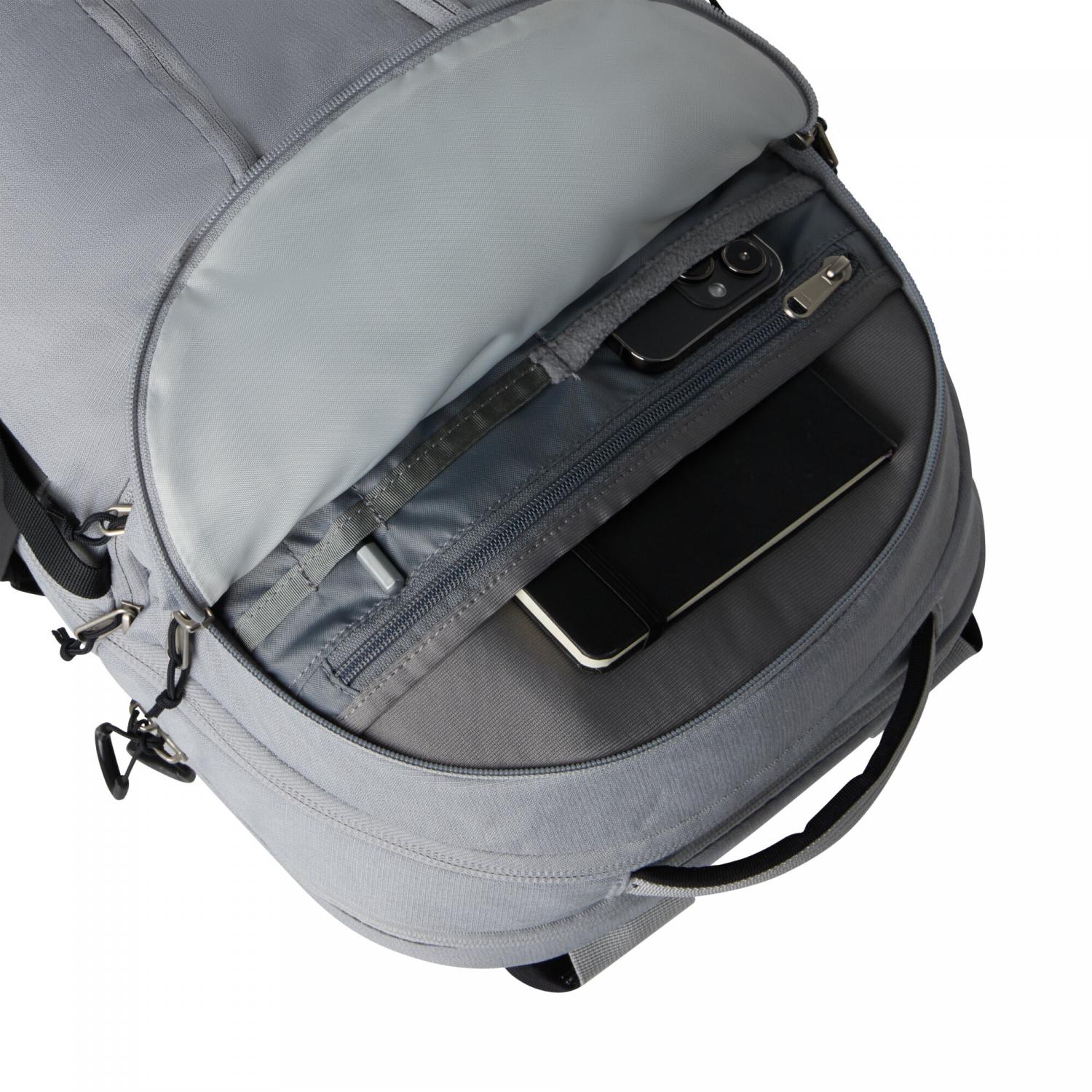 The North Face Rucksack Surge. Du verbringst fast mehr Zeit unterwegs als im Office? Dann ist der Surge genau dein Rucksack. Er besteht aus recyceltem Nylon Ripstop und kann so manches wegstecken. Dank seiner vorgeformten Schultergurte, dem gepolsterten Rücken sowie dem FlexVent™ Tragesystem trägt er sich sehr komfortabel - auch wenn er vollgefüllt ist. Seine 31 Liter Volumen bestehen aus einem großen Hauptfach, einem Frontfach mit gepolstertem iPad-Fach und RV-Taschen sowie einem Laptopfach. Und wenn du am Wochenende gerne wanderst, dann kommen dir der (abnehmbare) Hüftgurt, der Brustgurt und die beiden außen liegenden Getränketaschen genau recht. Maße: 30,5 x 17,8 x 50,8 cm. Volumen: 31 Liter. Material: 100% Polyester.