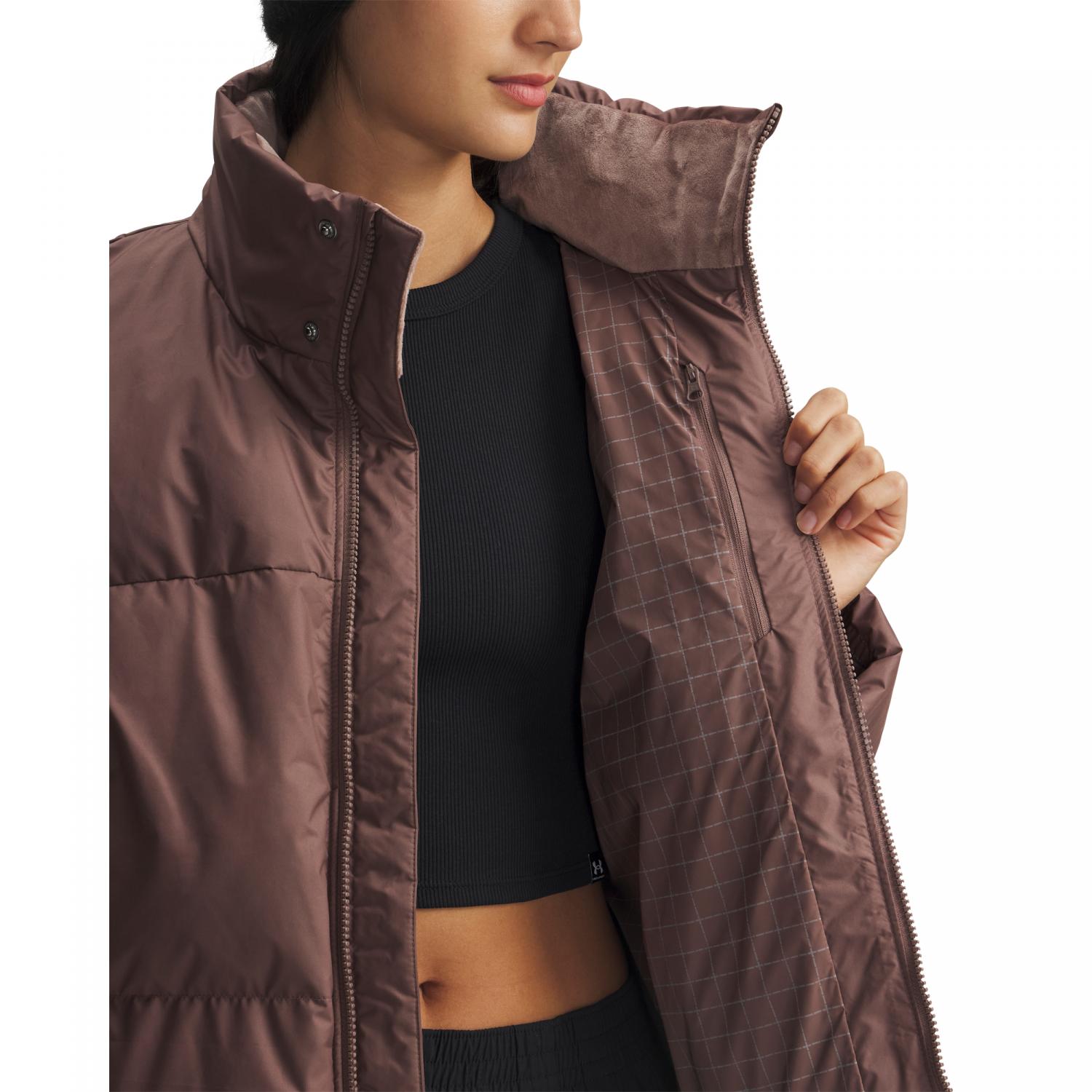Under Armour Limitless Daunenjacke. Dank superleichter Technologie für kaltes Wetter und einer weichen, gemütlichen Außenschicht bleibst du mit UA Limitless Down immer warm. Die UA Storm Technologie ist wasserabweisend, ohne die Atmungsaktivität einzuschränken. Entendaunenisolierung von Allied in 700er-Füllung bietet ein Höchstmaß an Wärme mit Daunen aus ethisch unbedenklicher Herkunft, die sich über das Etikett nachverfolgen lässt. Das ColdGear® Infrared-Futter nutzt eine weiche, wärmeleitende Innenbeschichtung, um die Körperwärme aufzunehmen und zu speichern. Gemütliches Fleece am Hals für noch mehr Wärme und Komfort. Abnehmbare, verstellbare Kapuze, Seitentaschen mit Zip und Brusttasche innen. Weiche ColdGear®-Strickbündchen an der Innenseite für zusätzlichen Tragekomfort und verstellbarer Saum an der Innenseite für einen sicheren Sitz. Das Hauptmaterial besteht zu mindestens 90 % aus recyceltem Polyester, Besatz und Verzierungen ausgenommen. Fluorfreie wasserabweisende Beschichtung. Füllung: 80% Daunen, 20% Federn. Futter: 100% Polyester. Obermaterial: 100% Polyester.