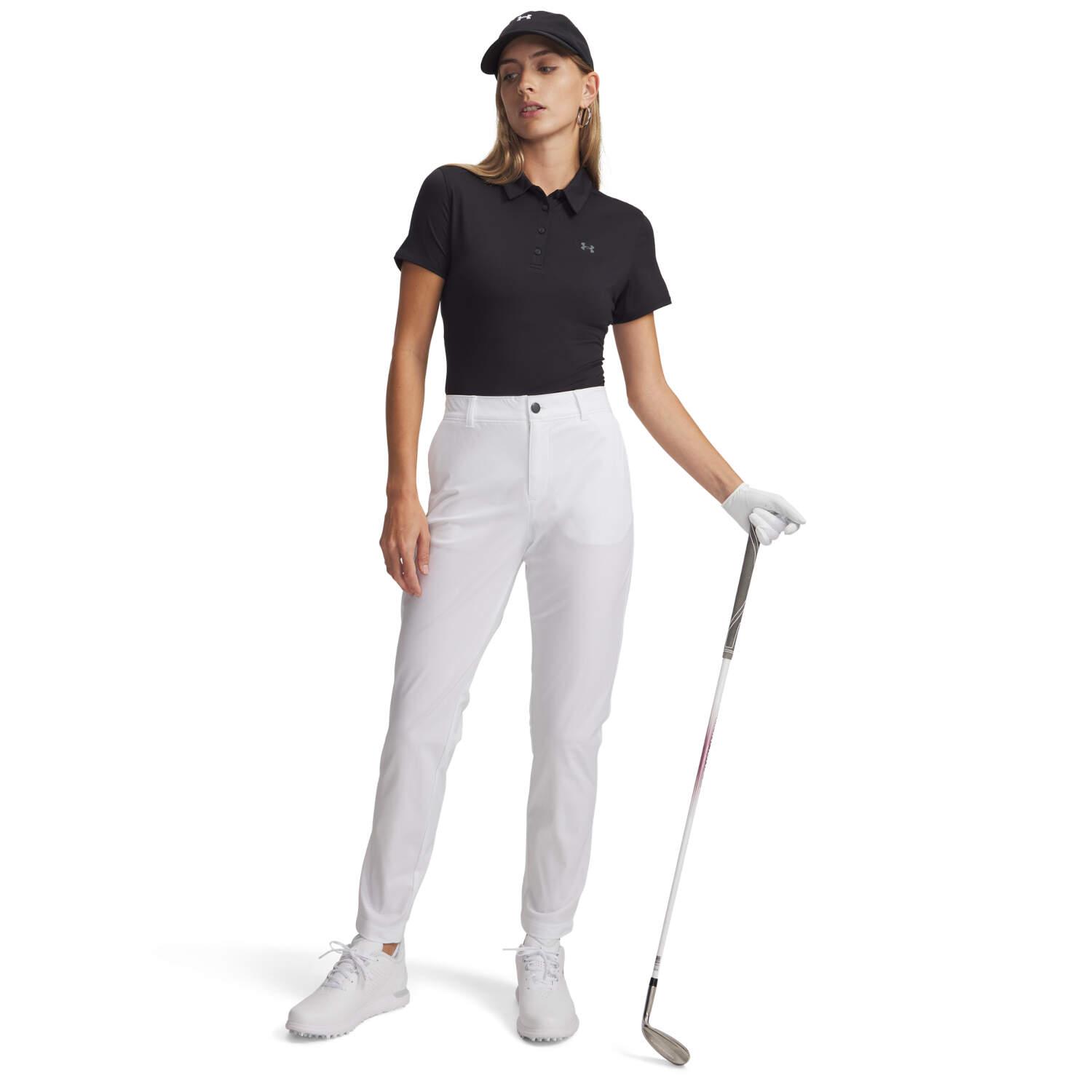 Die Under Armour Damen Golfhose Drive wurde entwickelt, um dir auf dem Platz maximale Bewegungsfreiheit und höchsten Komfort zu bieten. Das elastische Performance-Gewebe unterstützt jede Schwungbewegung und sorgt gemeinsam mit der modernisierten, schmal zulaufenden Passform für eine sportliche Silhouette mit reduziertem Luftwiderstand beim Abschlag. Dank UA Storm Technologie ist die Hose wasserabweisend, ohne dabei an Atmungsaktivität einzubüßen – ideal für wechselhafte Bedingungen auf dem Golfplatz. Das leistungsstarke Strickmaterial kombiniert die Dehnbarkeit und den Komfort eines Strickstoffs mit der strukturierten Optik eines gewebten Materials. Der 4-Wege-Stretch ermöglicht uneingeschränkte Beweglichkeit in alle Richtungen, während der überarbeitete, ultrabequeme Bund sich flexibel deinen Bewegungen anpasst. Offene Seiten- und Gesäßtaschen bieten praktischen Stauraum für Scorekarte oder Tees. Eine fluorfreie wasserabweisende Beschichtung sowie geruchsregulierende Technologie runden die funktionale Ausstattung ab. Mit einer Innenbeinlänge von 73,5 cm vereint diese Golfhose Performance, Stil und Komfort auf höchstem Niveau. Material: 100% Polyester.