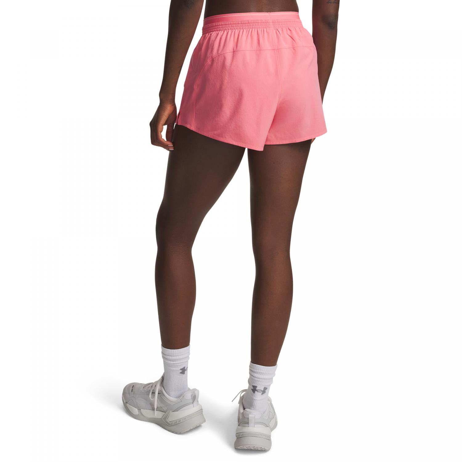 Under Armour Damen Vanish Woven Short. UA Vanish hält dich nichts zurück. Diese Shorts sind äußerst leicht, robust, atmungsaktiv und schnelltrocknend, um dich kühl und fokussiert zu halten. Leichtes, strapazierfähiges und superbequemes Stretchgewebe. Der 4-Wege-Stretchstoff sorgt für größere Bewegungsfreiheit in alle Richtungen. Das Material leitet Schweiß ab und trocknet sehr schnell. Integrierter Innenslip für verbesserte Abdeckung. Bund mit freiliegendem Stretchteil an der oberen Kante und Wortmarkendetail. Offene Seitentaschen. Geformter Saum mit seitlichen Lüftungsschlitzen und geschwungene Nahr an der Rückseite für einen figurschmeichelnden Sitz. Innenbeinlänge: 7,5 cm. Material: 86% Polyester, 14% Elasthan.