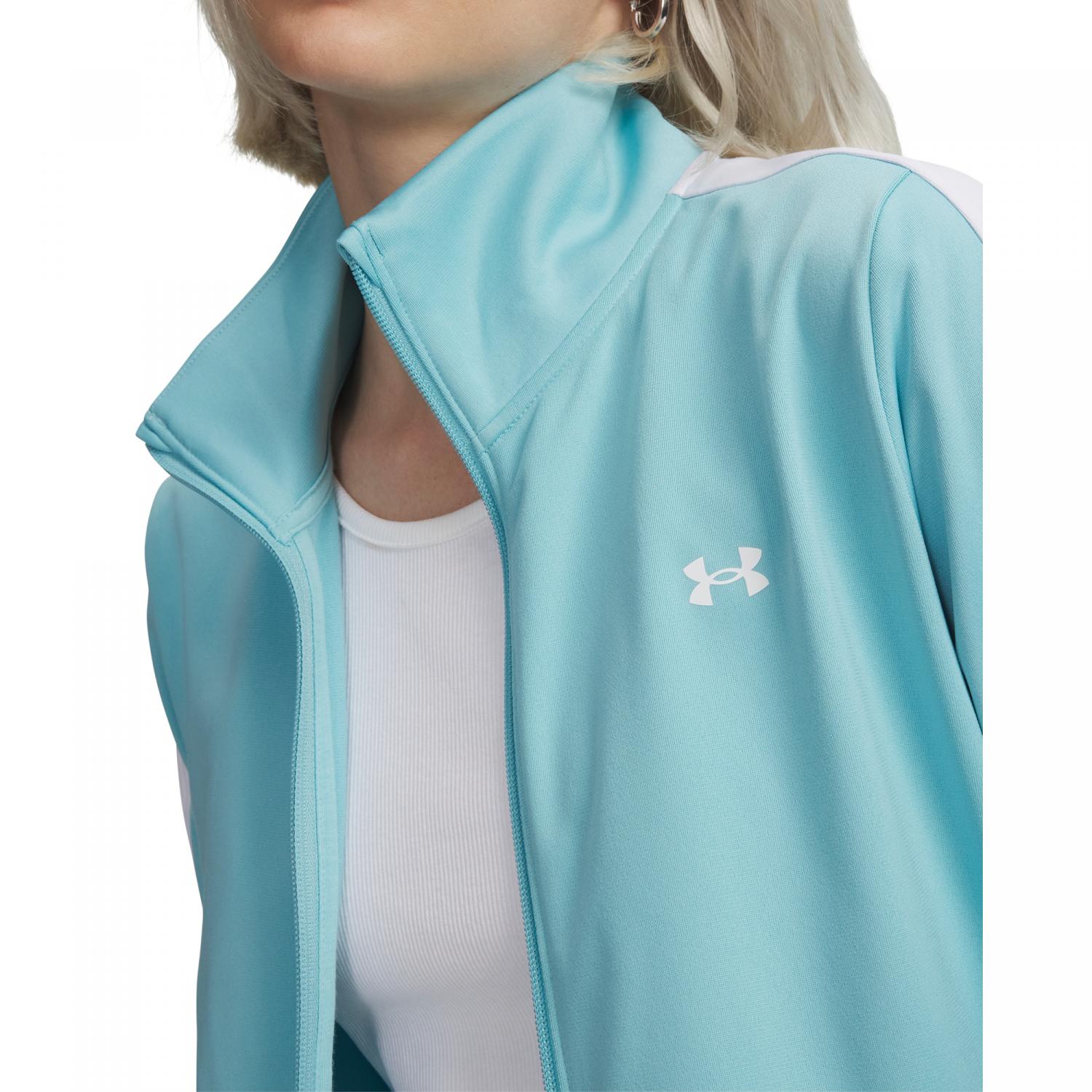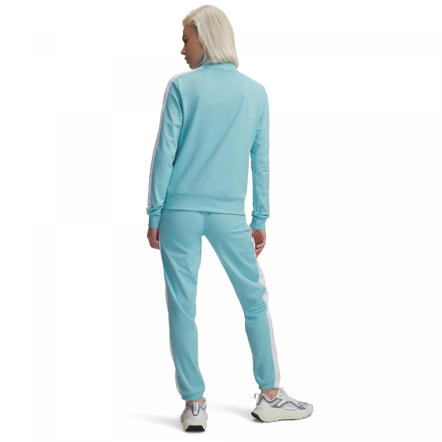 Under Armour Damen Trainingsanzug Tricot Tracksuit. Ein Trainingsanzug wie gemacht für dein Workout. Er ist leicht, aber trotzdem warm, er dehnt sich, damit du dich bewegen kannst, und ist atmungsaktiv, wenn dein Körper wärmer wird. Material: 100% Polyester.