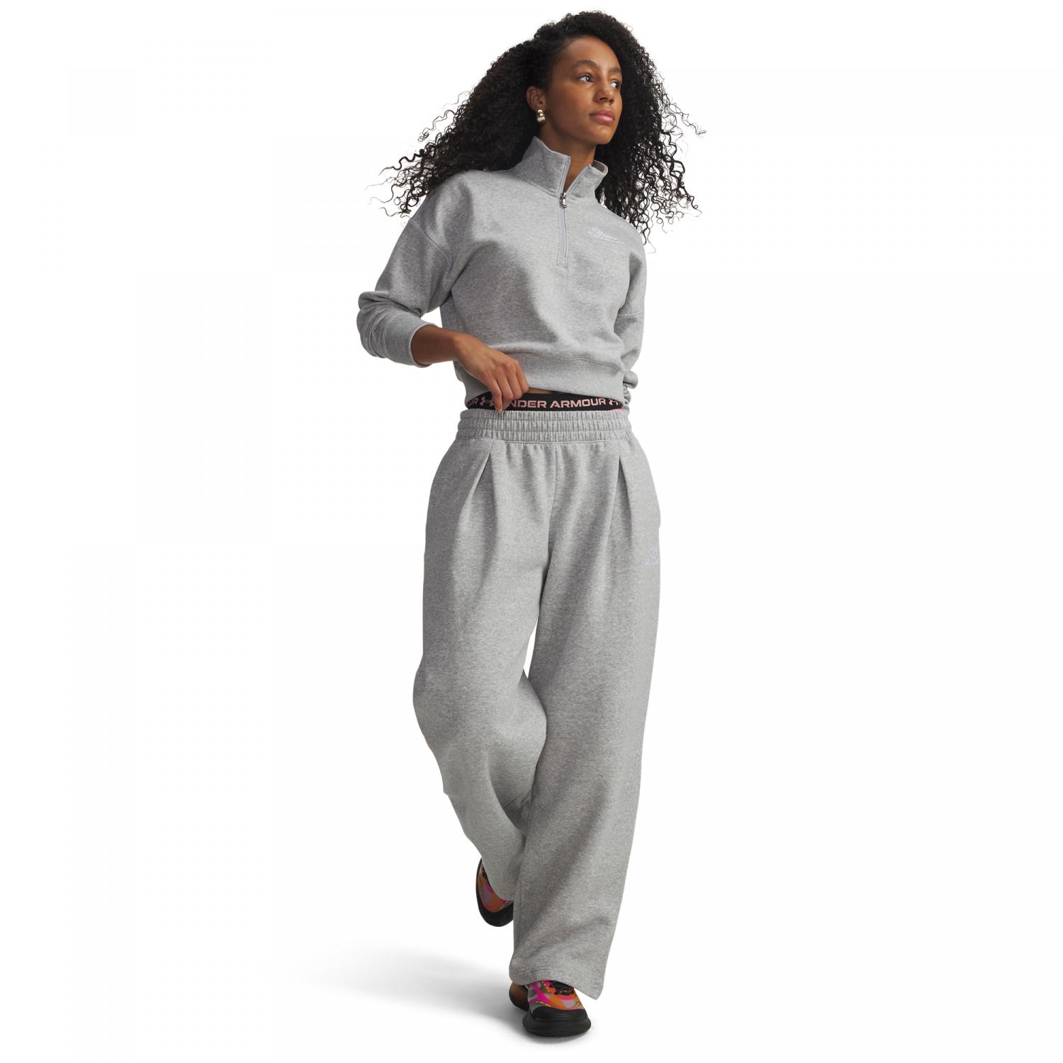 Under Armour Damen Trainingshose Rival Fleece Script. Die Under Armour Damen Trainingshose Rival Fleece Script ist der perfekte Begleiter für kühle Tage und entspannte Trainingseinheiten. Das ultraweiche Fleece aus Baumwollmix mit aufgerauter Innenseite sorgt für angenehme Wärme und besonders hohen Tragekomfort. Der eingefasste Elastikbund mit innenliegendem Kordelzug ermöglicht eine individuelle Passform, während offene Seitentaschen praktischen Stauraum bieten. Ein dezentes Faltendetail auf der Vorderseite verleiht der Hose einen modernen Look. Mit einer Innenbeinlänge von 76 cm und dem Materialmix aus 80 % Baumwolle und 20 % Polyester kombiniert diese Trainingshose gemütlichen Komfort mit sportlichem Style. Material: 80% Baumwolle, 20% Polyester