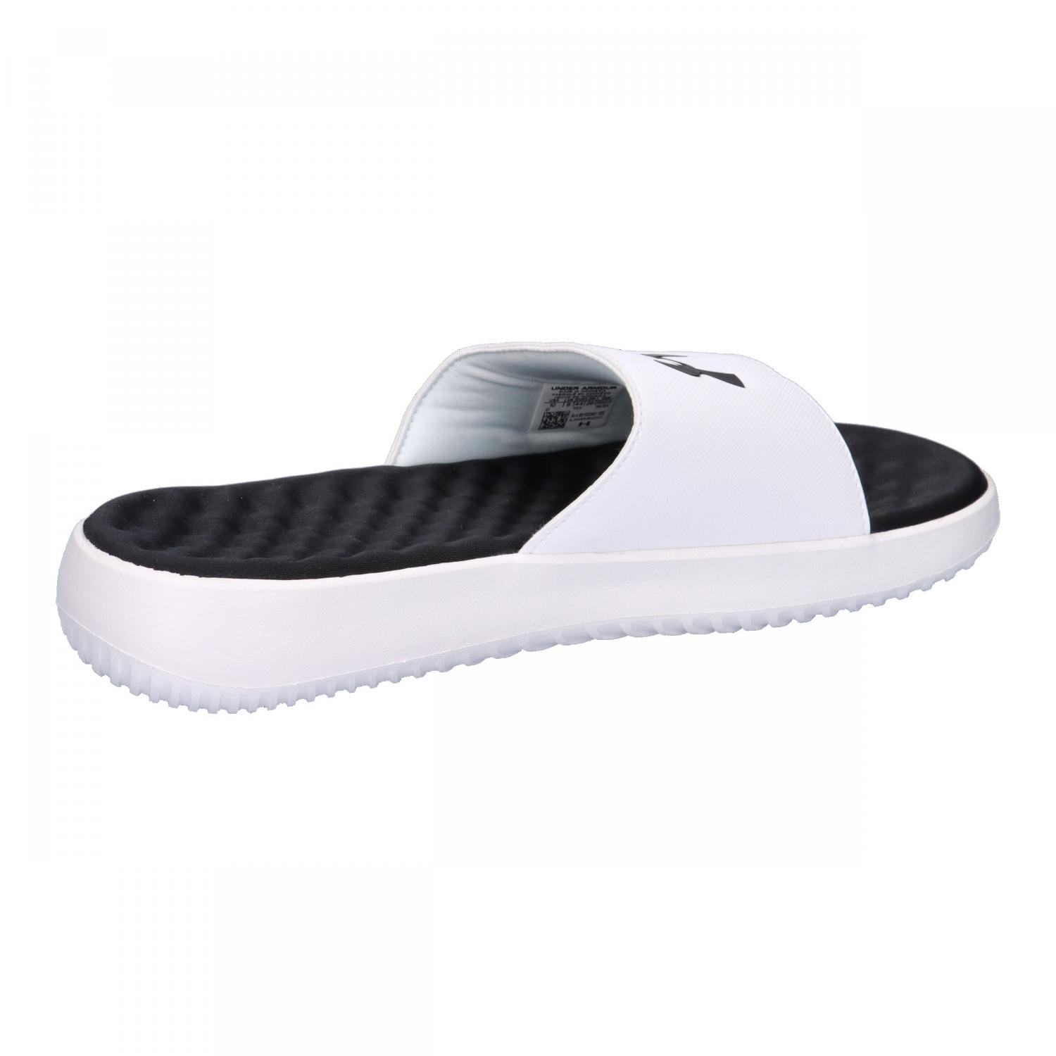 Die Under Armour Herren Badeschlappen UA Ignite Pro 8 Fixed Strap sind der ideale Begleiter nach dem Training und bieten dank hochwertigem Memory-Schaumstoff ein besonders angenehmes Tragegefühl, das Druckstellen effektiv verhindert. Der nicht verstellbare Riemen mit Rollkante und zusätzlicher Schaumstofffütterung sorgt für hohen Komfort und sicheren Sitz. Das weiter verbesserte, besonders weiche Memory-Schaumstoff-Fußbett passt sich optimal dem Fuß an, während höhere Seitenteile und eine erhöhte Gesamthöhe zusätzliche Stabilität bieten. Abgerundet werden die Badeschlappen durch eine strapazierfähige EVA-Außensohle mit Rillenmuster, die für zuverlässigen Grip sorgt. Obermaterial: Sonstiges Material. Futter und Decksohle: Textil. Laufsohle: Sonstiges Material.